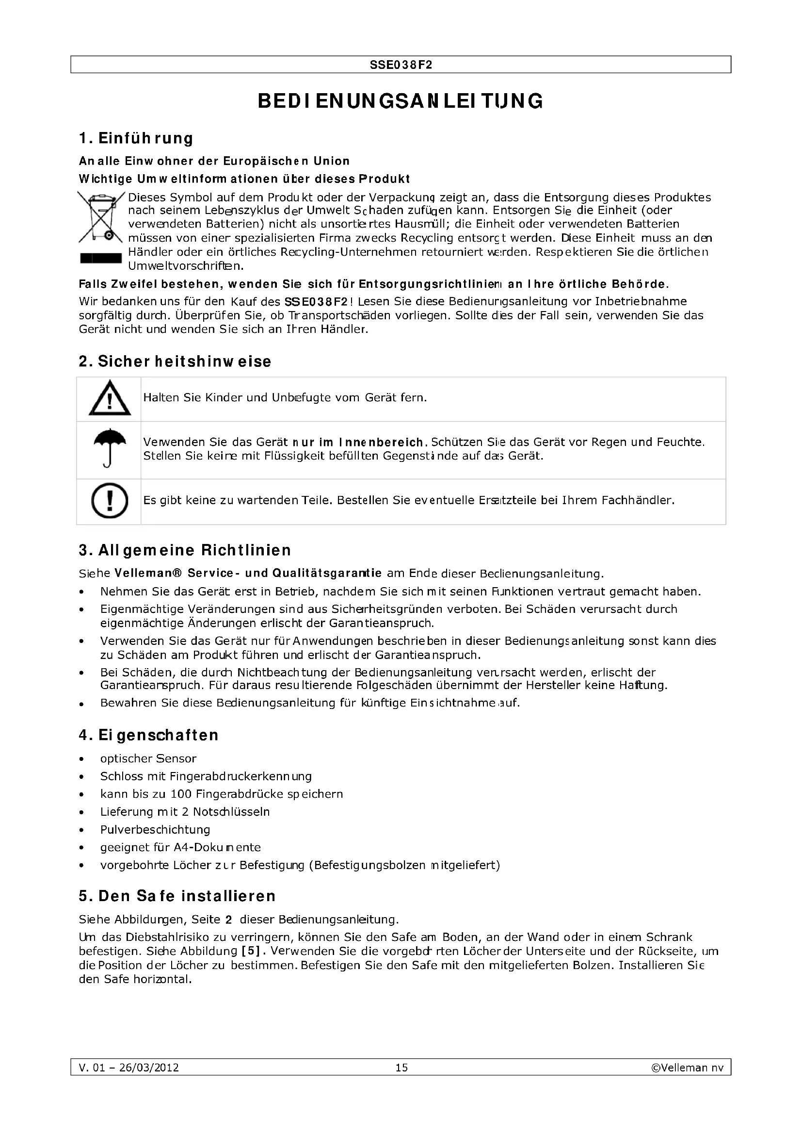 Laden Sie die Anleitung für Ihr Tresor kostenlos im PDF-Format! Finden Sie Ihr Handbuch SSE038F2 - Perel und nehmen Sie Ihr elektronisches Gerät wieder in die Hand. Auf dieser Seite sind alle Dokumente veröffentlicht, die für die Verwendung Ihres Geräts notwendig sind. SSE038F2 von der Marke Perel.