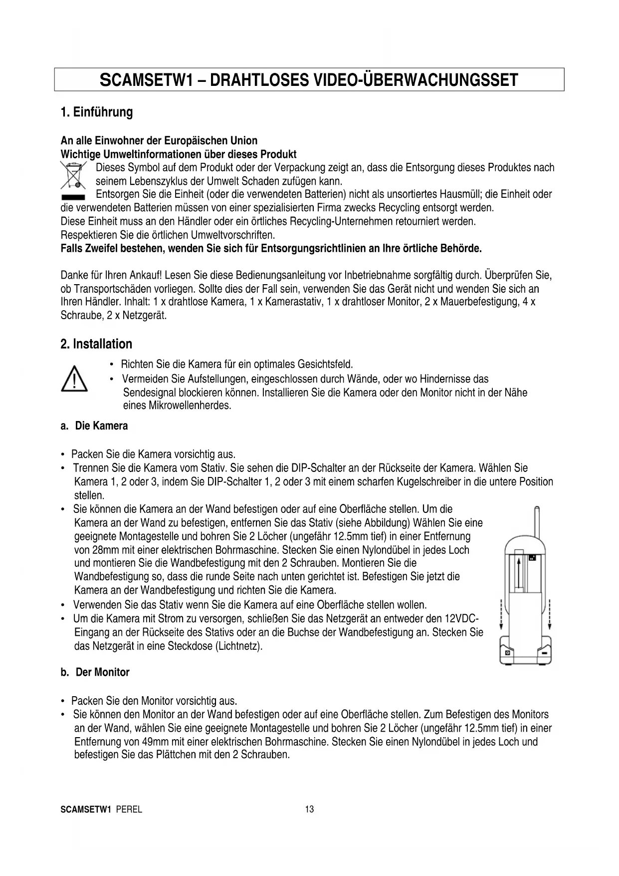 BEDIENUNGSANLEITUNG SCAMSETW1 Perel