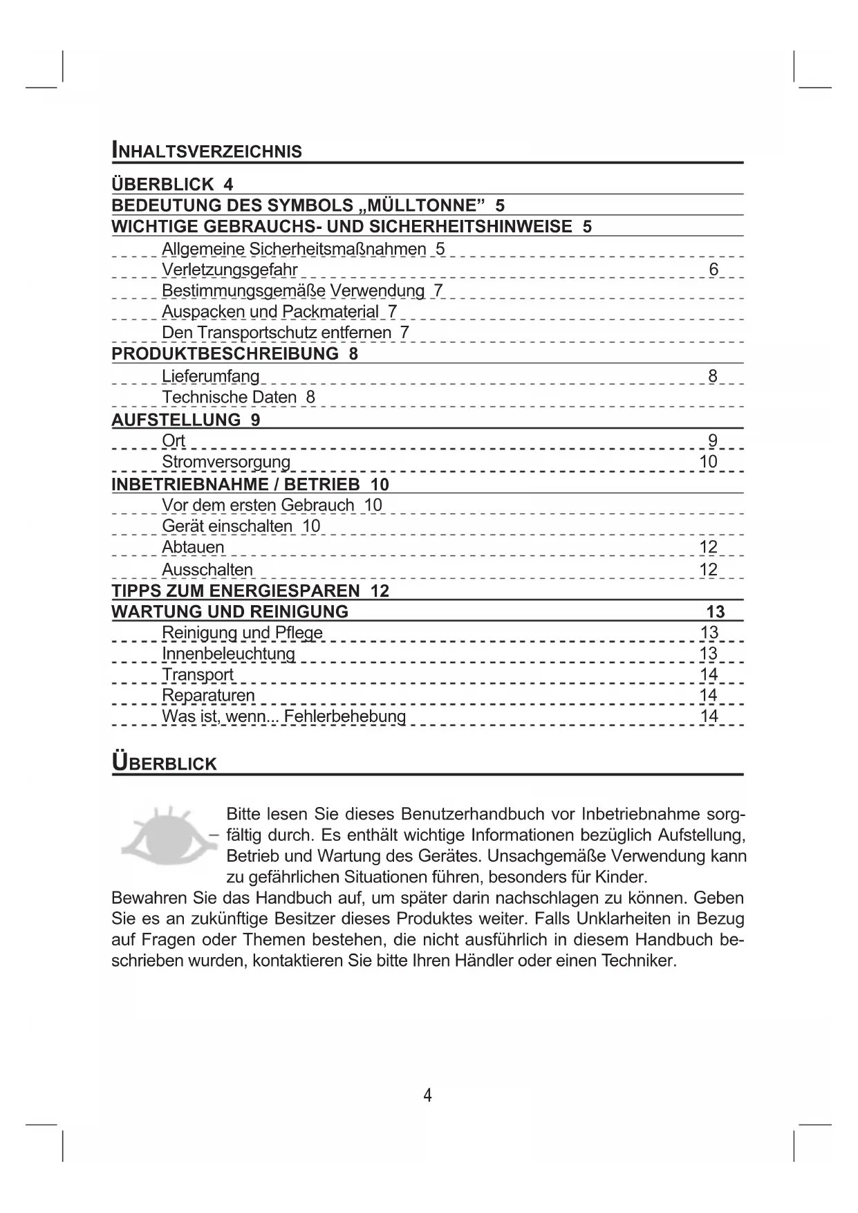 Bitte lesen Sie dieses Benutzerhandbuch vor Inbetriebnahme sorgfältig durch. Es enthält wichtige Informationen bezüglich Aufstellung, Betrieb und Wartung des Gerätes. Unsachgemäße Verwendung kann zu gefährlichen Situationen führen, besonders für Kinder.