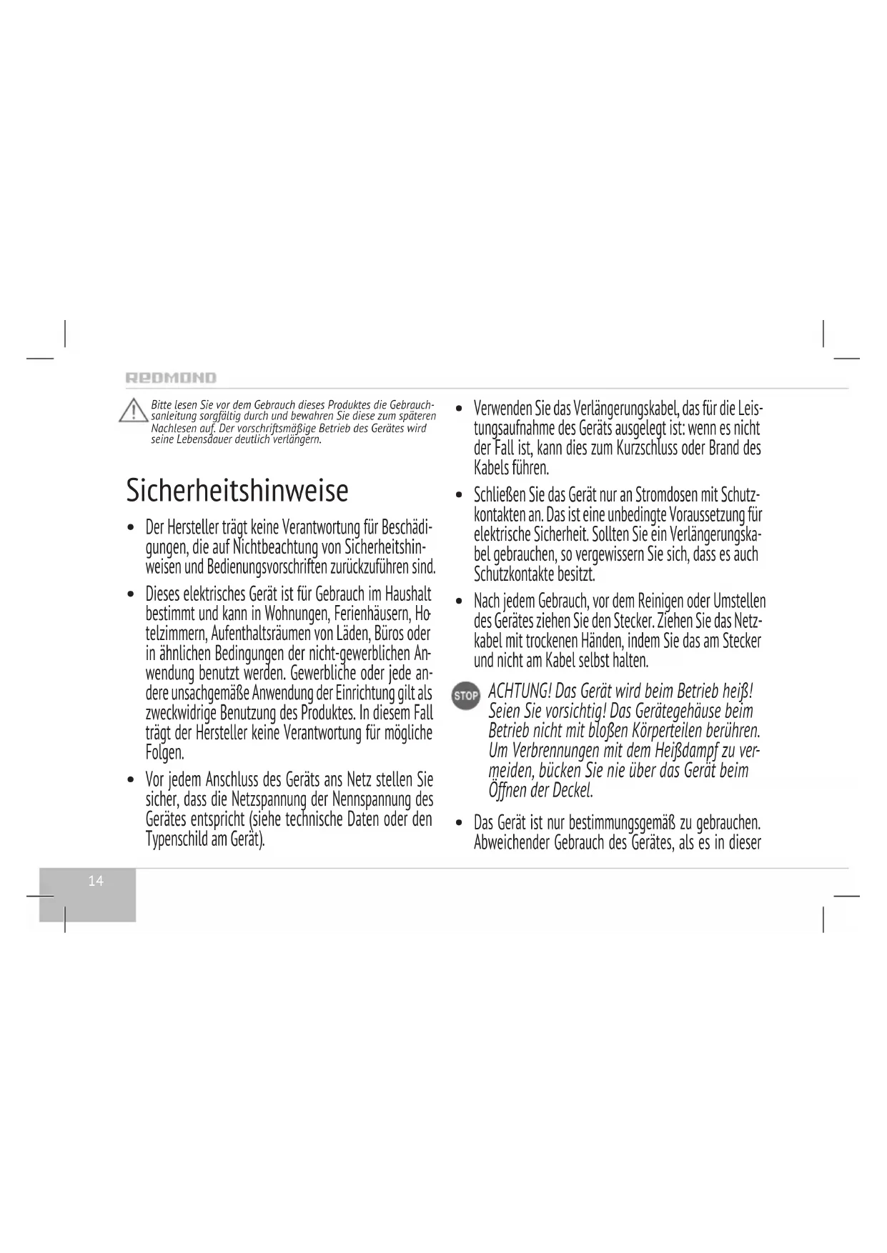 BEDIENUNGSANLEITUNG RKM143E Redmond
