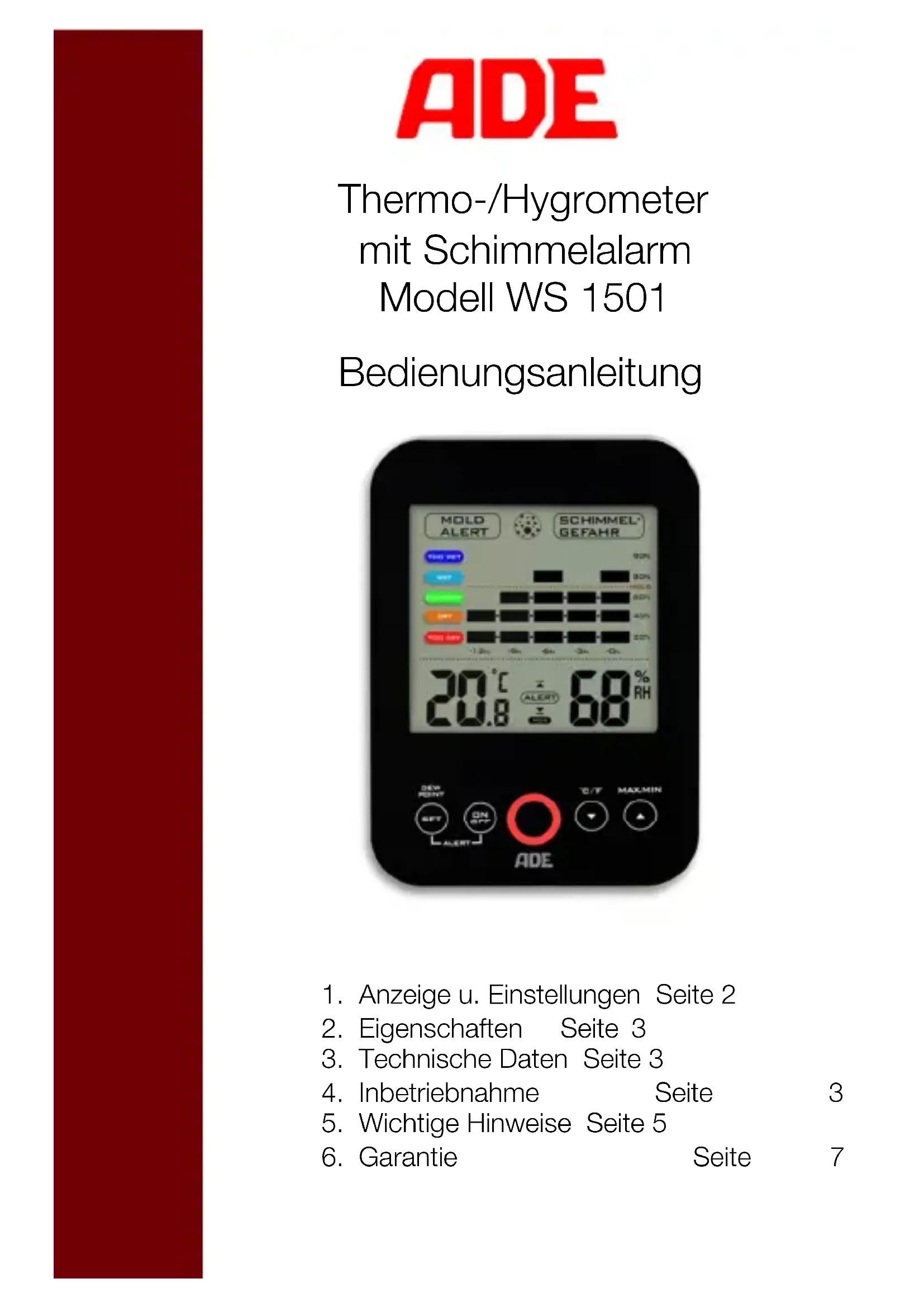 Thermo-/Hygrometer mit Schimmelalarm Modell WS 1501 Bedienungsanleitung