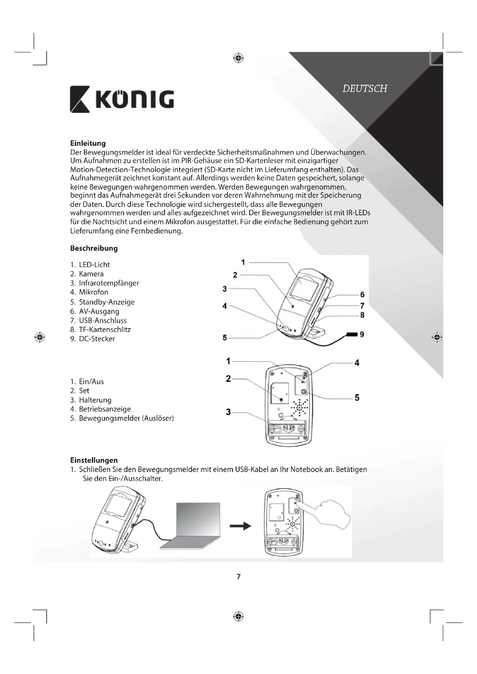 Finden Sie kostenlos die Bedienungsanleitung des Geräts SASDVRPIR10 KONIG als PDF.