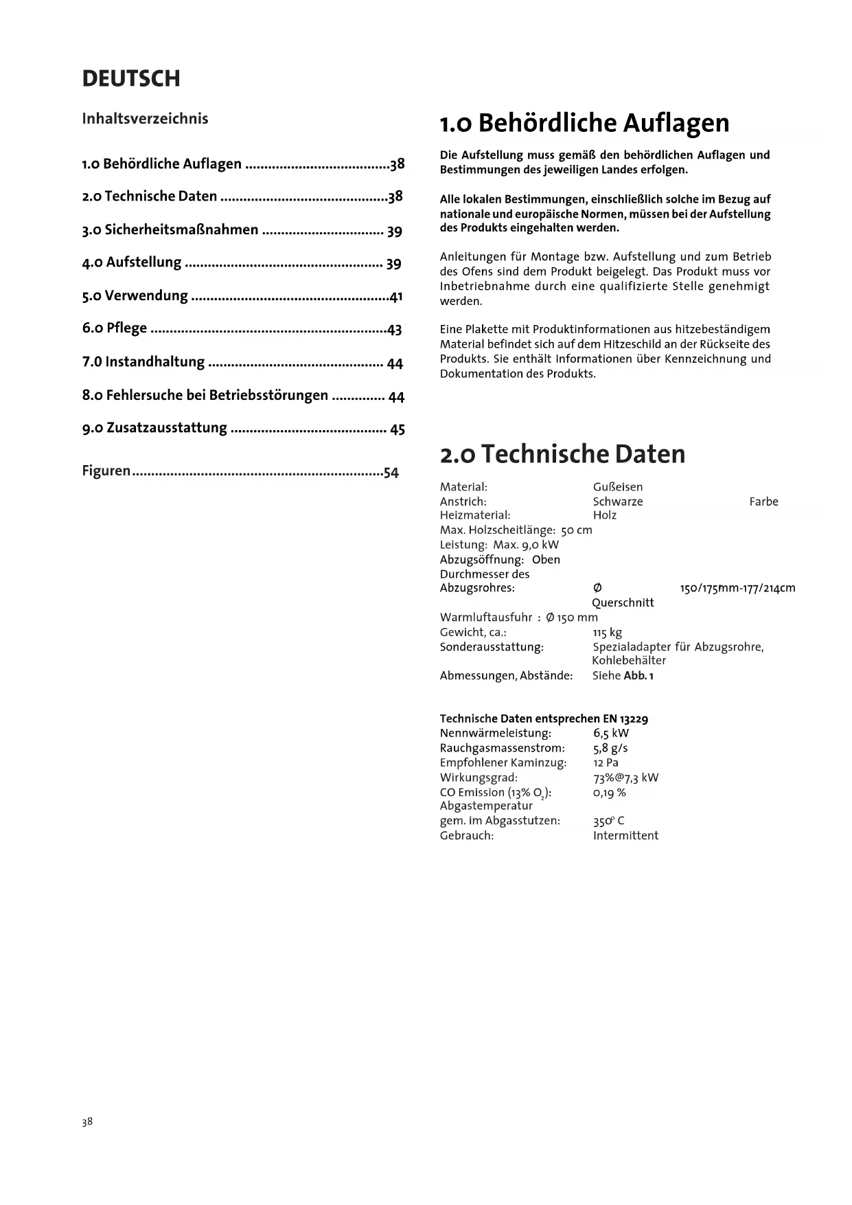 Technische Daten entsprechen EN 13229