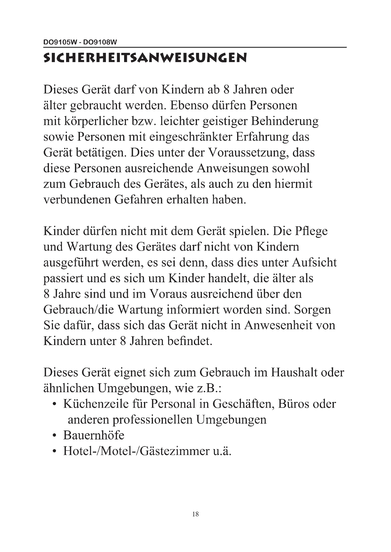 Dieses Gerätarf von Kindern ab 8 Jahren oder alters gebraucht werden. Ebenso dürfen Personen mit körperlicher bzw. leichter geistiger Behinderung sowie Personen mit eingeschränkter Erfahrung das Gerät betätigten. Dies unter der Voraussetzung, dass diese Personen ausreichende Anweisungen sowohl zum Gebrauch des Gerätes, als auch zu den hiermit verbundenen Gefahren erhalten haben.