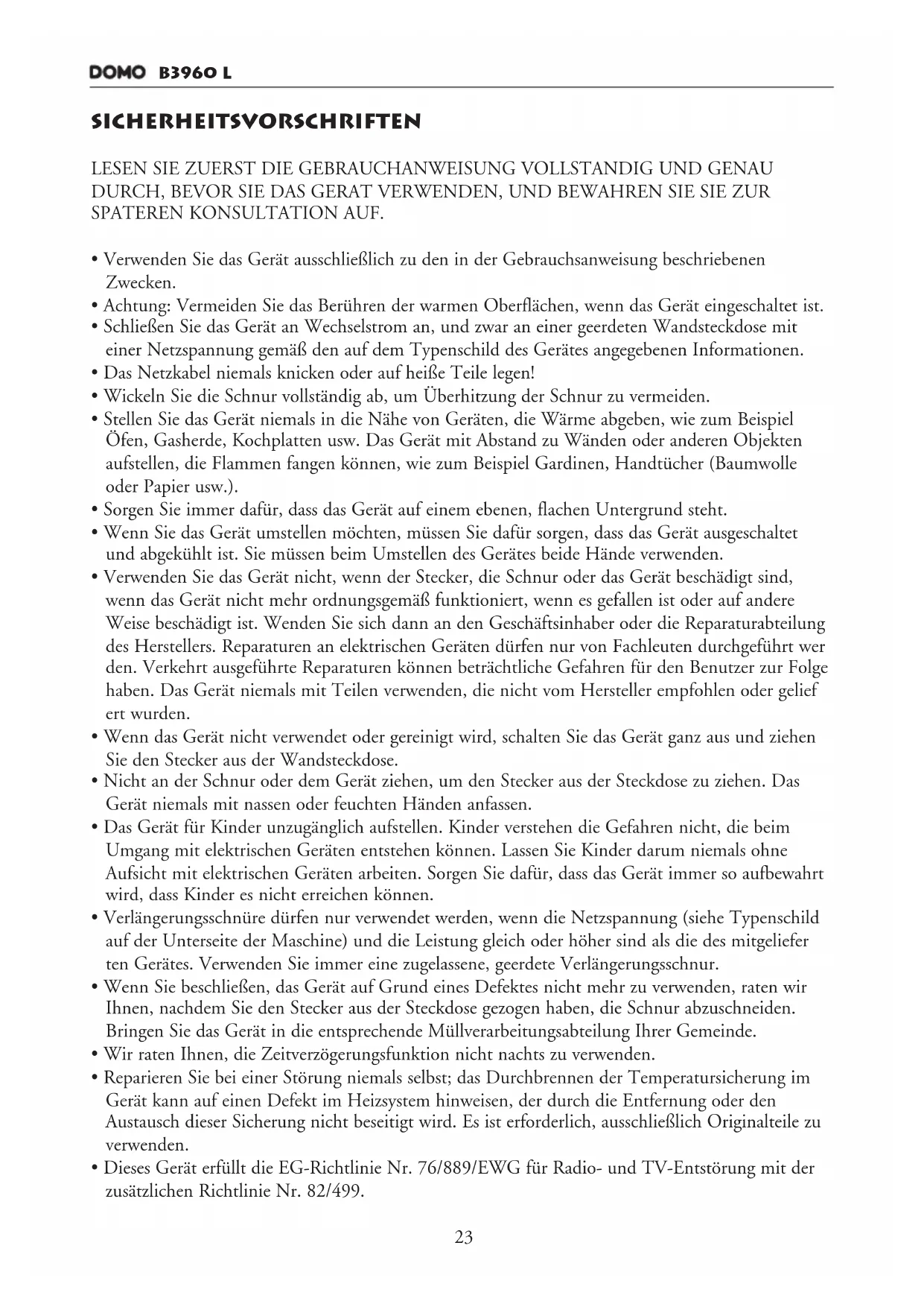BEDIENUNGSANLEITUNG B3960 DOMO