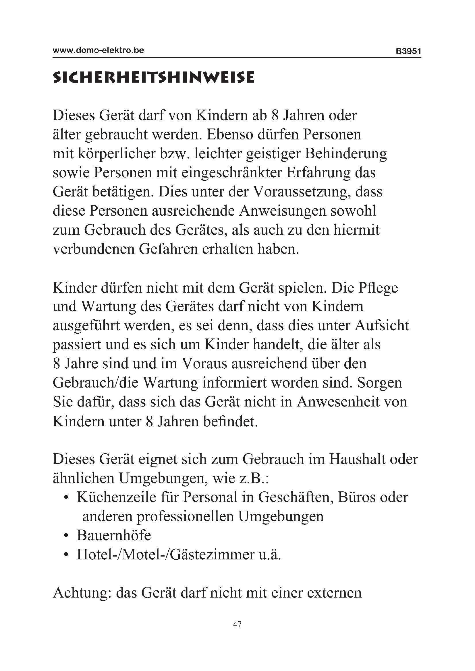 BEDIENUNGSANLEITUNG B3951 DOMO