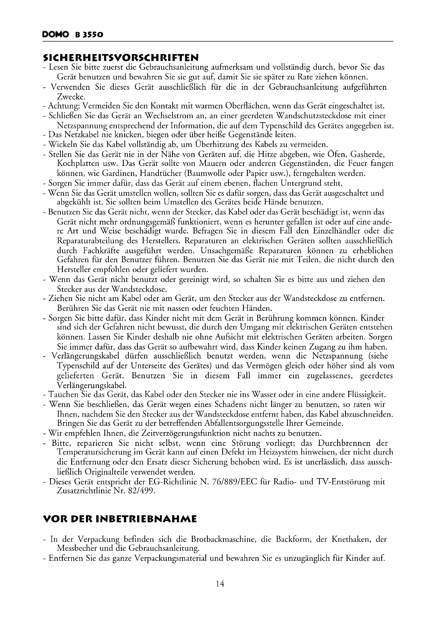 BEDIENUNGSANLEITUNG B3550 DOMO