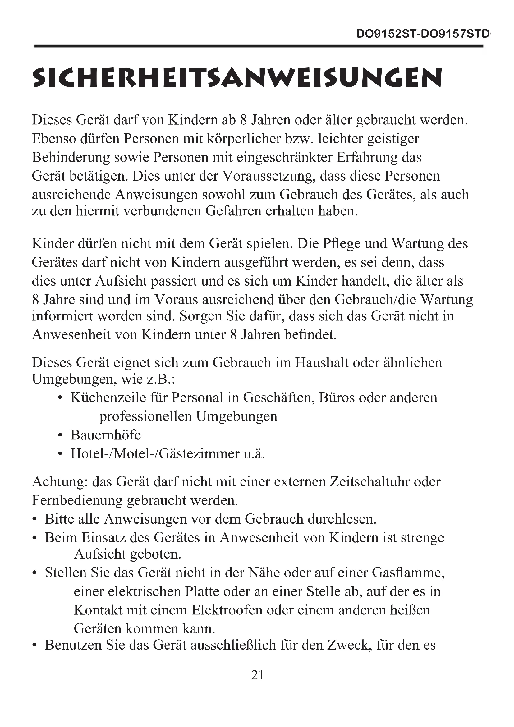 BEDIENUNGSANLEITUNG DO9155ST DOMO