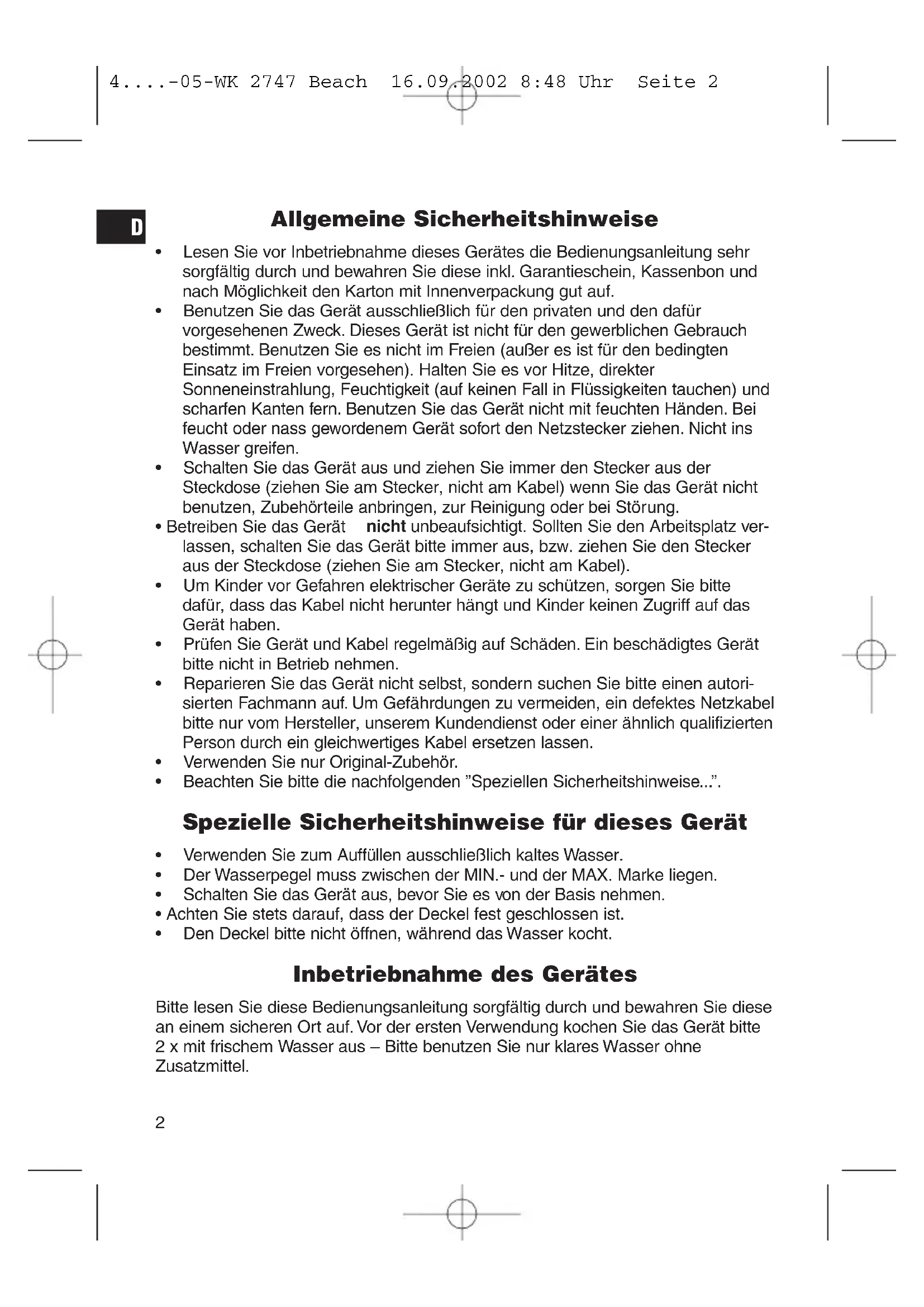 - Vízforraló Электрический чайник 4....-05-WK 2747 Beach 16.09.2002 8:48 Uhr Seite 1Allgemeine Sicherheitshinweise