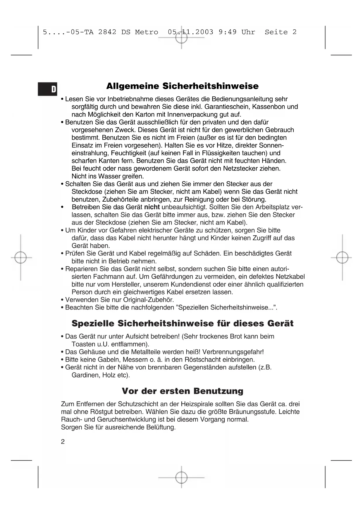5....-05-TA 2842 DS Metro 05.11.2003 9:49 Uhr Seite 23General Safety Instructions