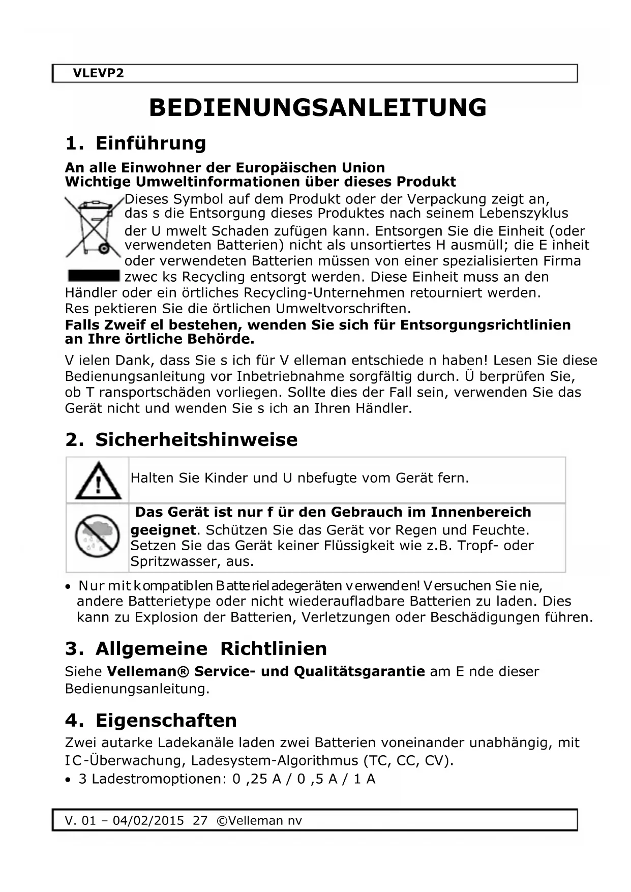 VLEVP2 - Batterieladegerät VELLEMAN - Kostenlose Bedienungsanleitung