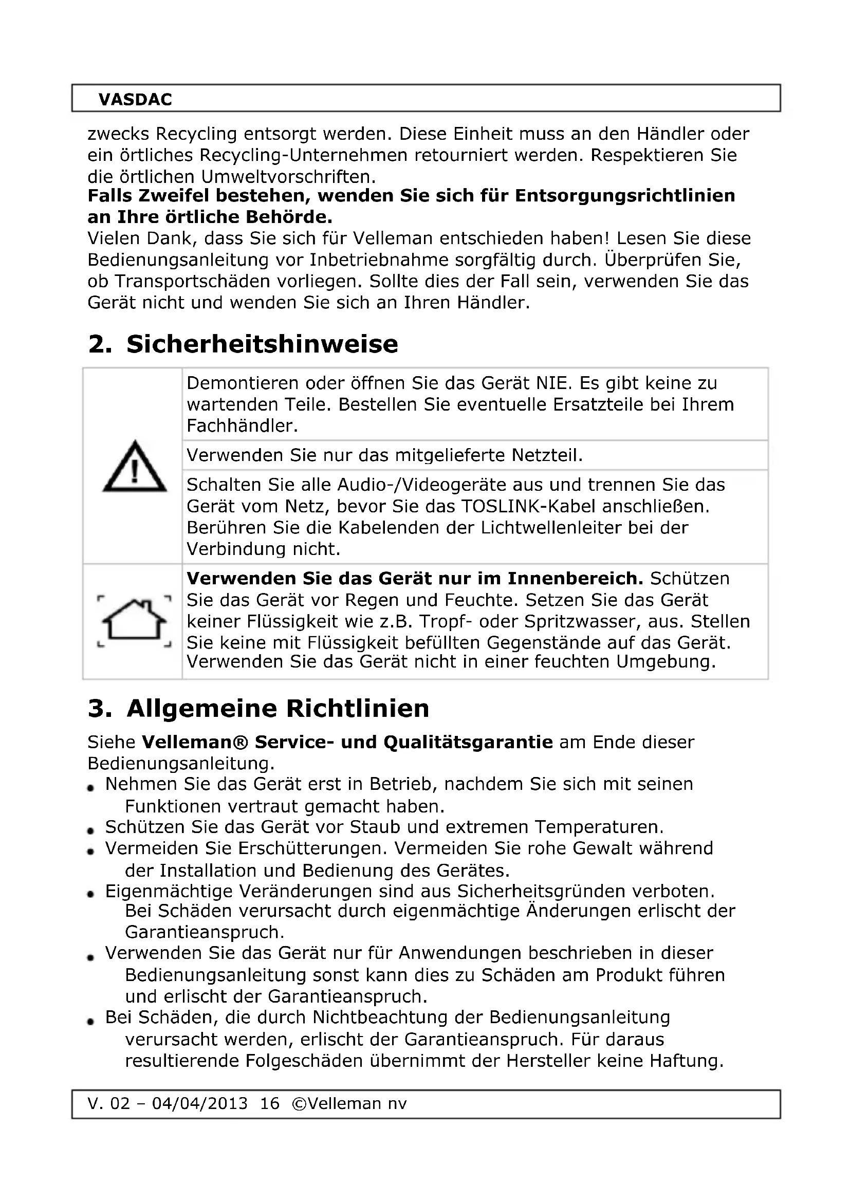 BEDIENUNGSANLEITUNG VASDAC VELLEMAN