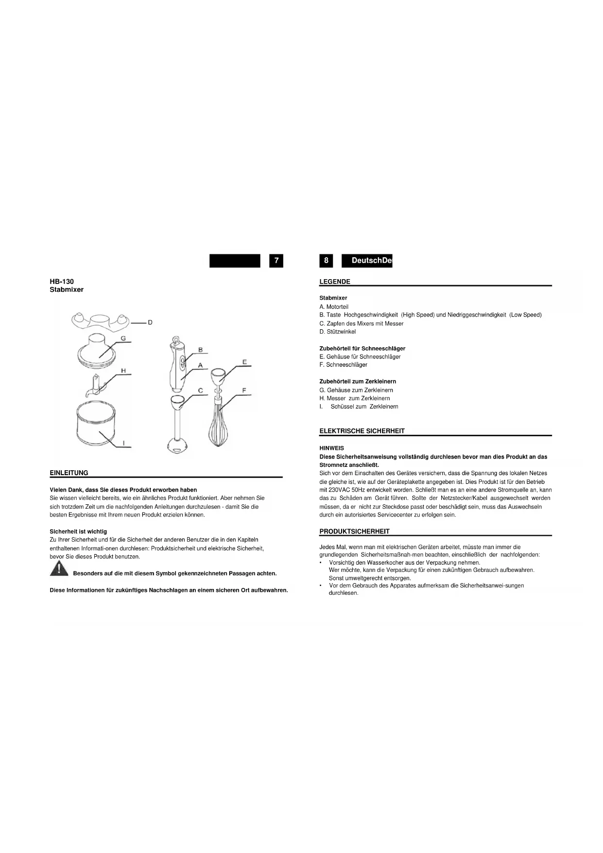 These Sicherheitsanweisung vollständig durchselen bevor man den Produkt an das Stromnetz anschließt.