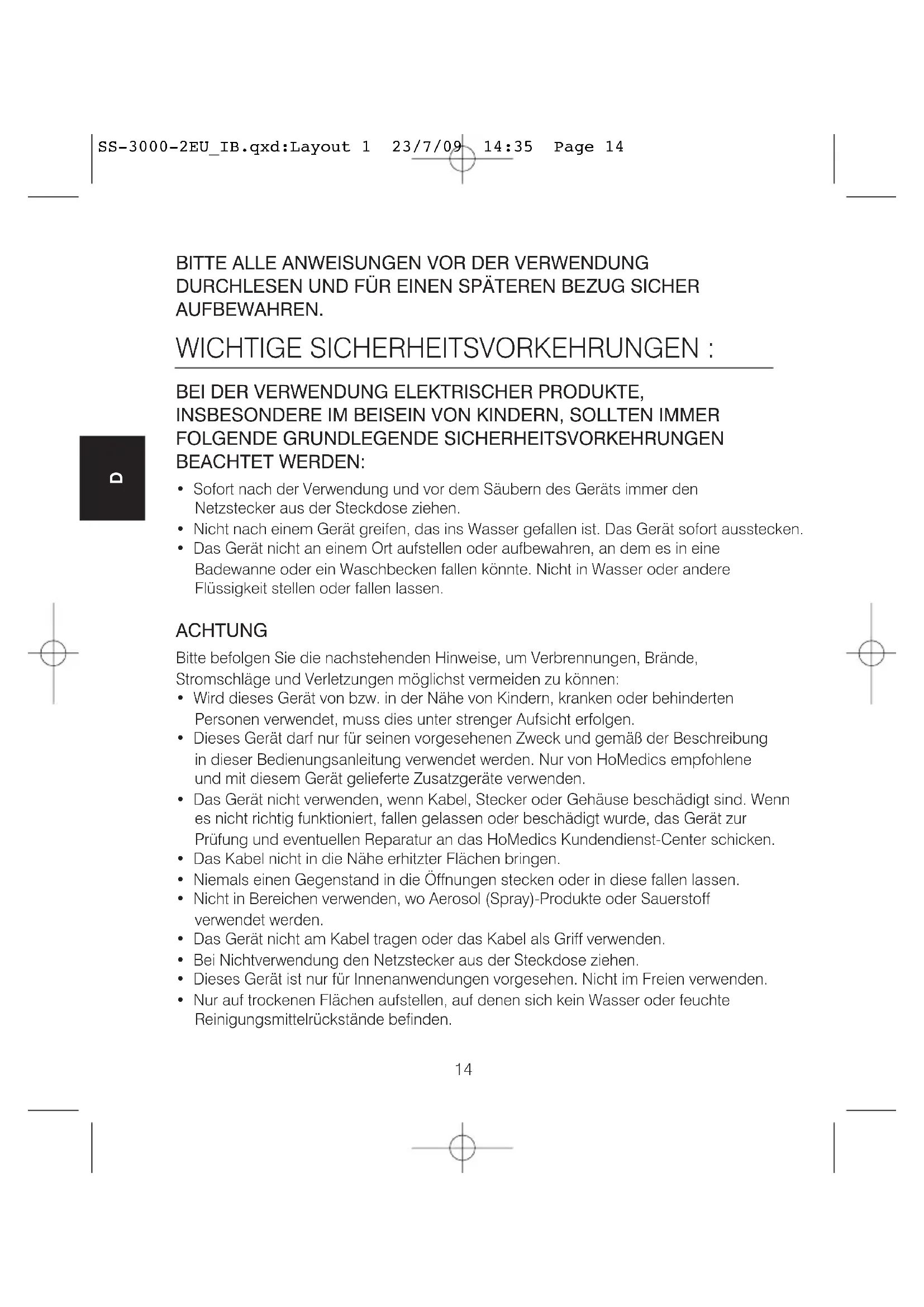 BEDIENUNGSANLEITUNG SS30002 HOMEDICS
