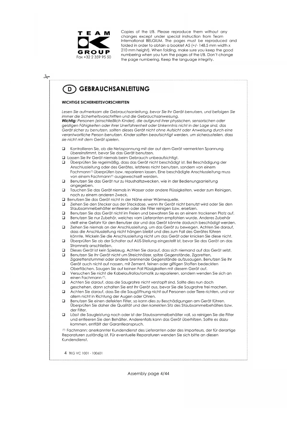 Dieses Gerat ist kein Spielzeug. Achten Sie daraufauf, dass sich niemand auf das Gerät setzen.