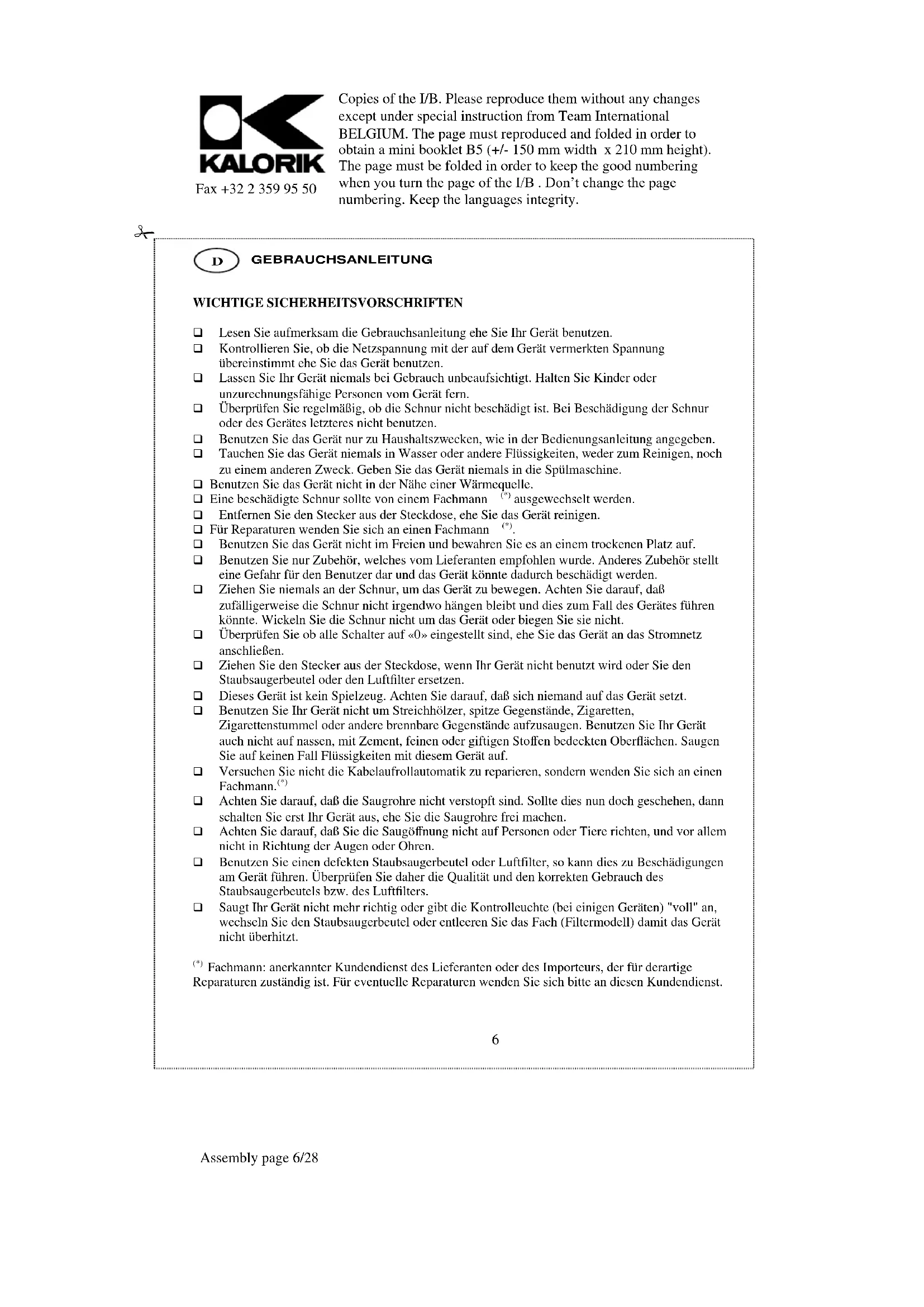 KA ASP 12 - Staubsauger KALORIK - Kostenlose Bedienungsanleitung