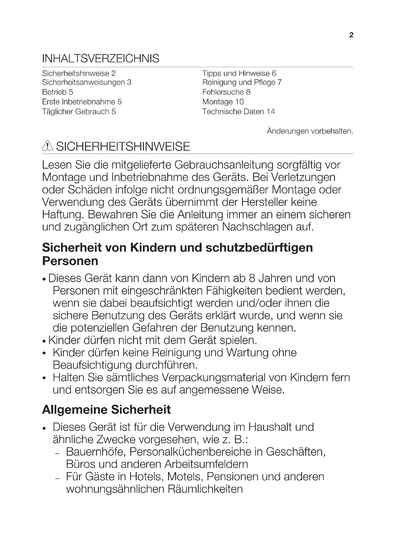 - Dieses Gerät kann dann von Kindern ab 8 Jahren und von Personen mit eingeschrankten Fähigkeiten bedient werden, wenn sie darauf beaufsichtigt werden und/oder ihren die sichere Benutzung des Geräts erklärwt wurde, und wenn sie die potenziellen Gefahren der Benutzung kennen.