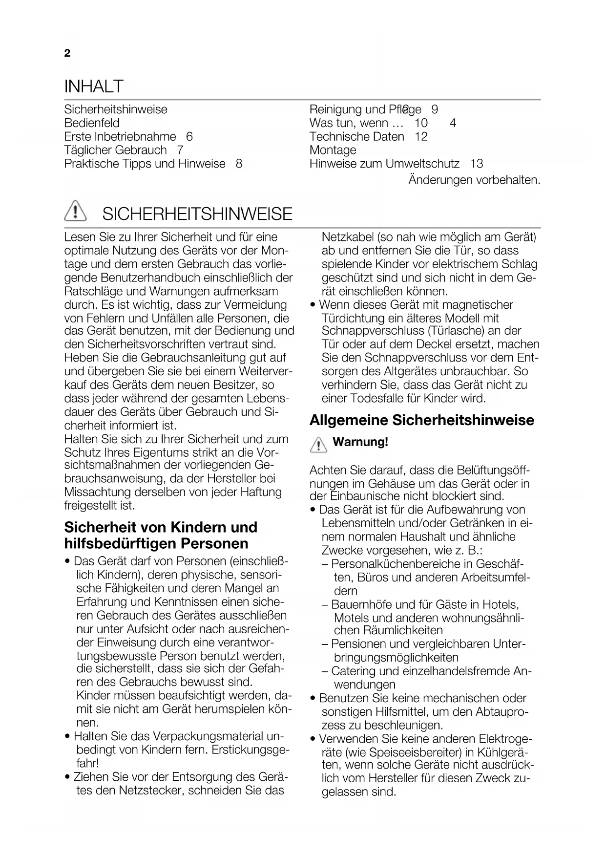 - Wenn dieses Gerät mit magnetischer Türdichtung ein älteres Modell mit Schnappverschluss (Türlasche) an der Tür oder auf dem Deckel ersetzt, machen Sie den Schnappverschluss vor dem Ent- sorgen des Altgerätes unbrauchbar. So verhindern Sie, dass das Gerät nicht zu einer Todesfalle für Kinder wird. Allgemeine Sicherheitshinweise Warnung! Achten Sie darauf, dass die Belüftungsöff- nungen im Gehäuse um das Gerät oder in der Einbaunische nicht blockiert sind.