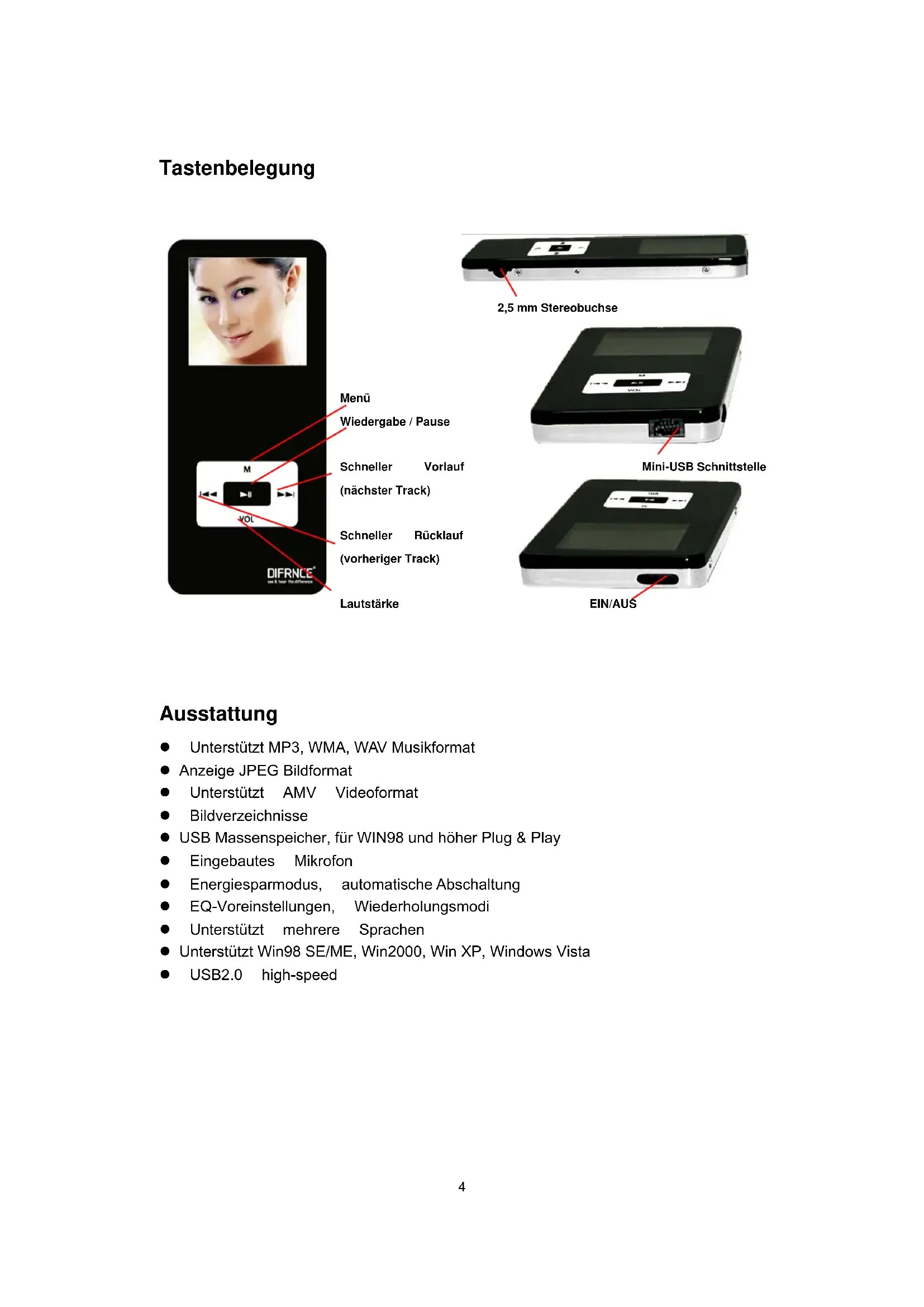 MP1010 - Mp3-player Difrnce - Kostenlose Bedienungsanleitung