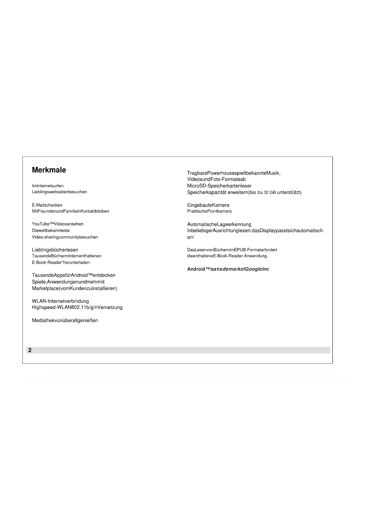 | BetriebssystemAndroidTM4.1 | |