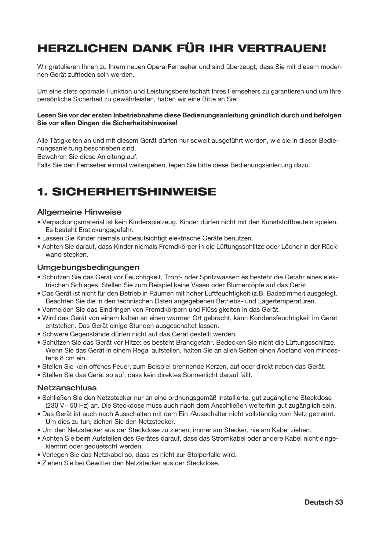 Wir gratulieren Ihnen zu ihrem neuen Opera-Fernseher und sind überzeugt, dass Sie mit diesen modernen Gerät zufrieden sein werden.