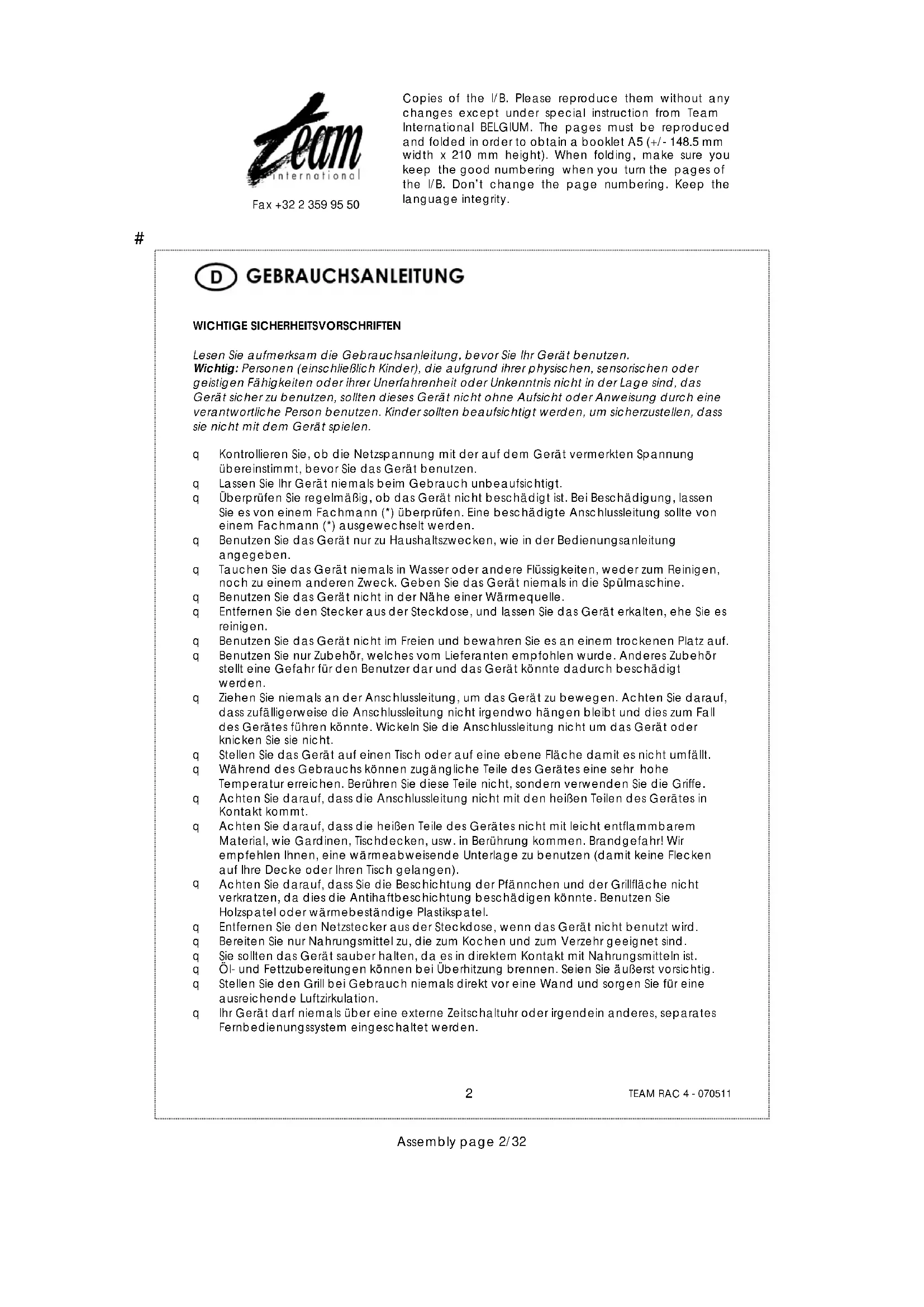 BEDIENUNGSANLEITUNG RAC 4 TEAM