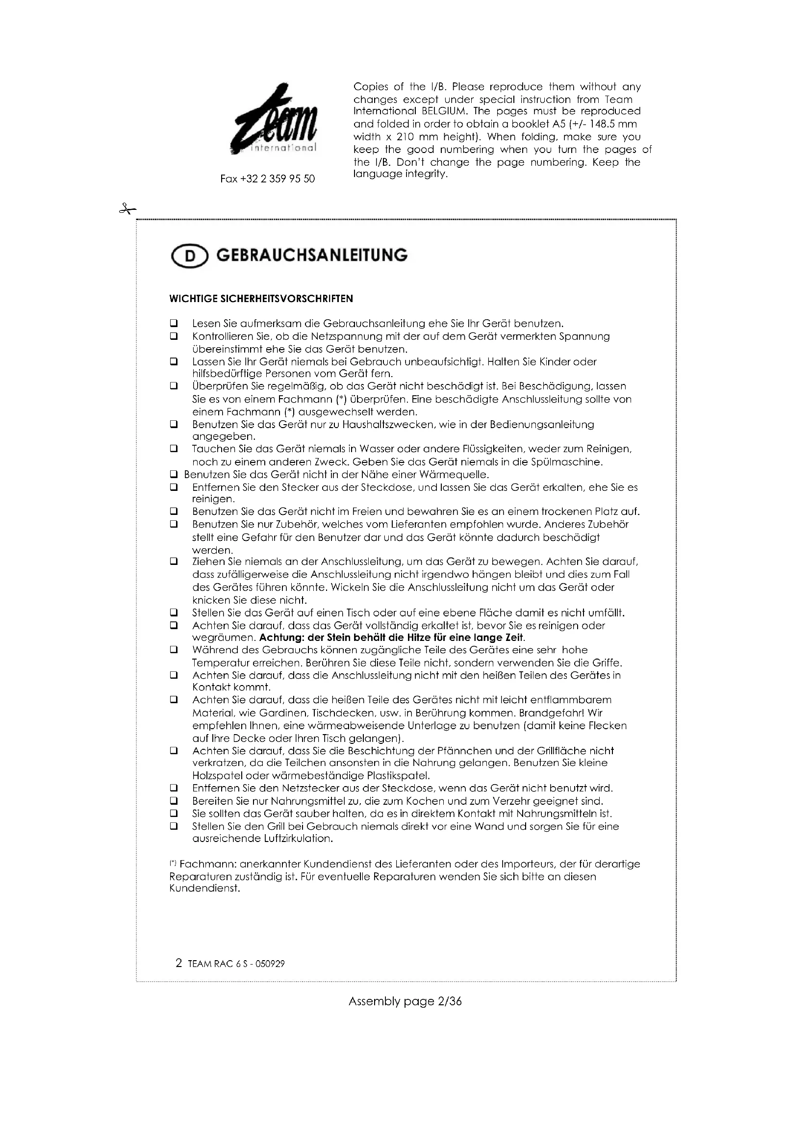 RAC 6 - Fondue-, Raclette- und Wokgerät TEAM - Kostenlose Bedienungsanleitung