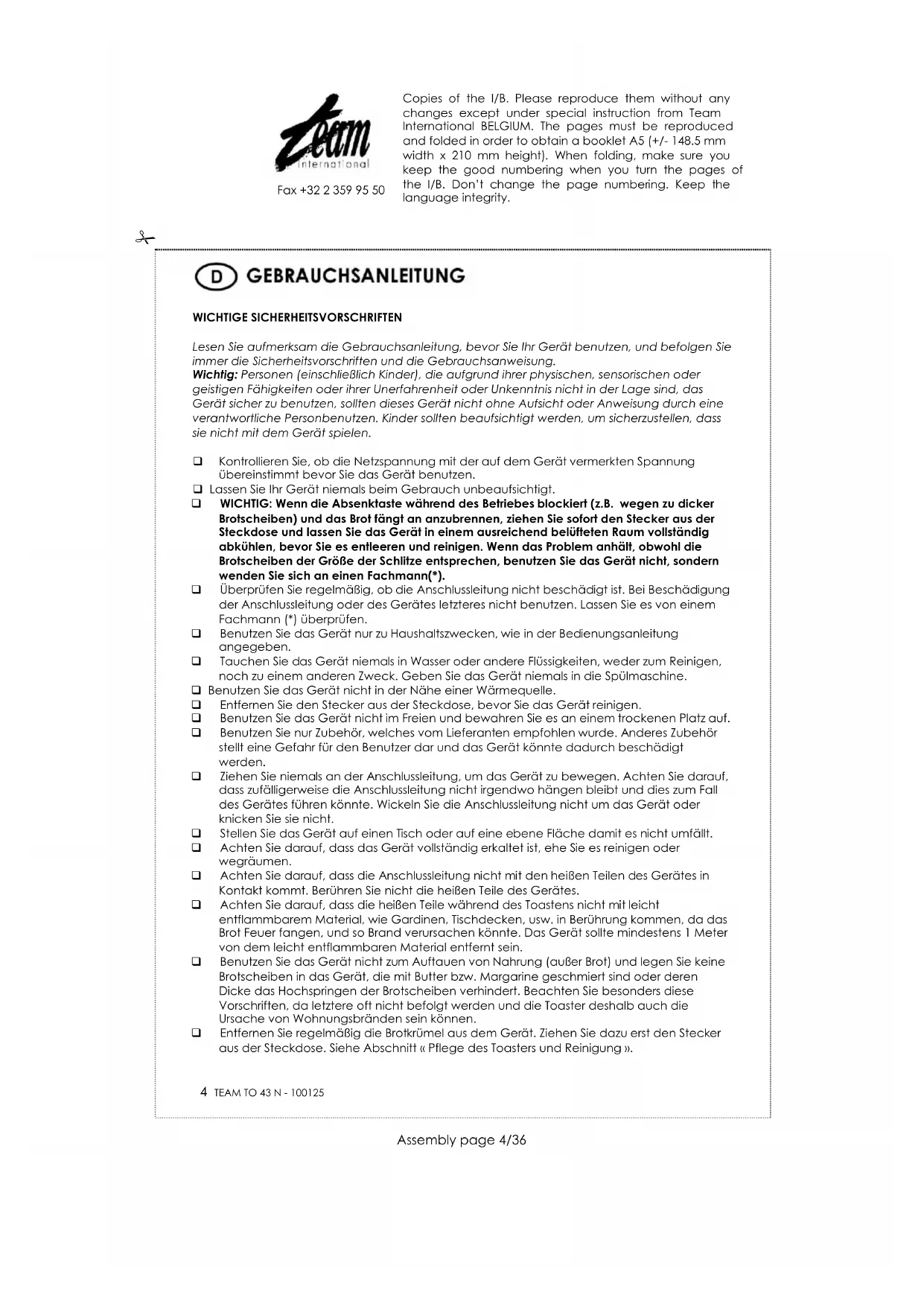 BEDIENUNGSANLEITUNG TO 43 TEAM