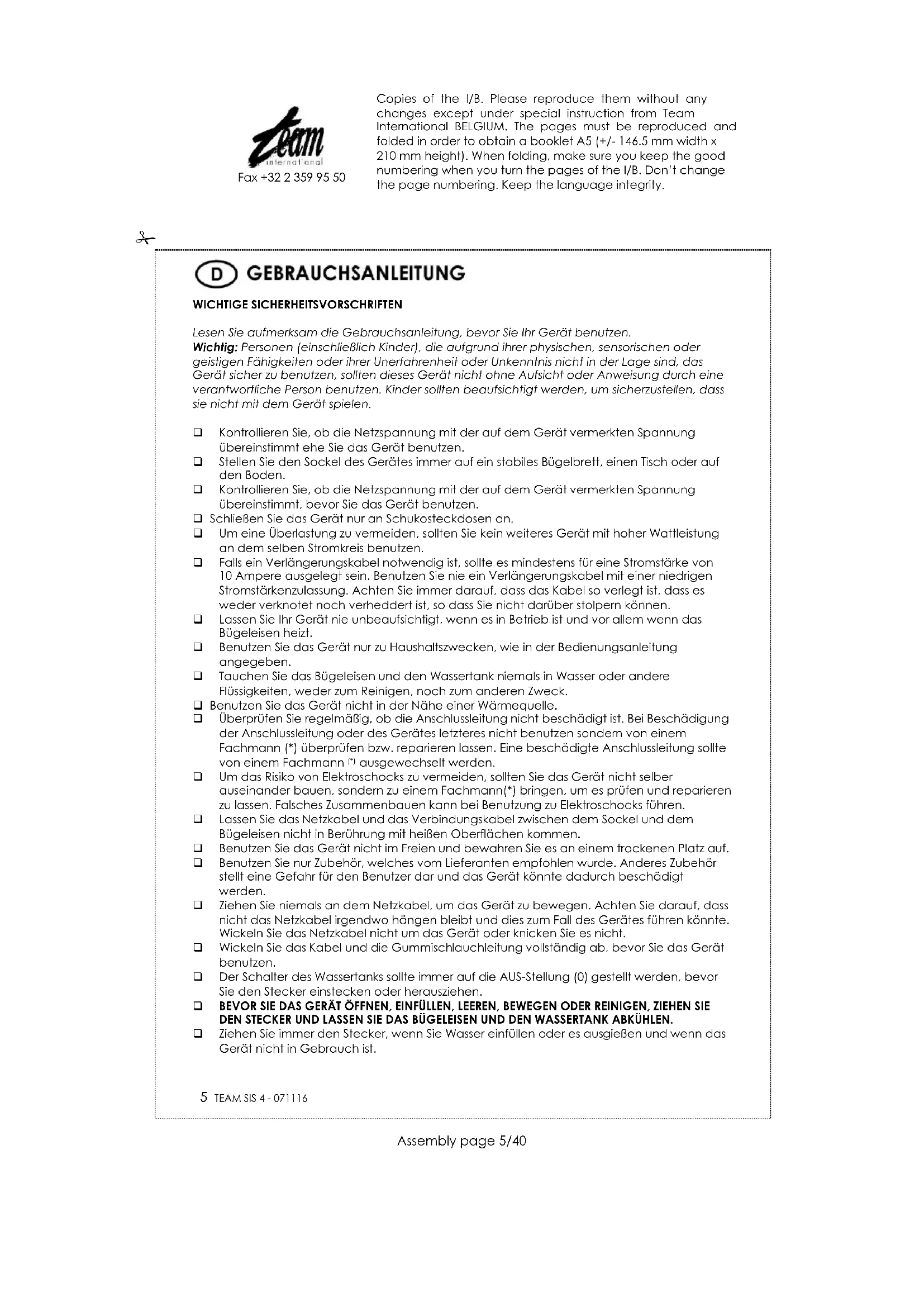 SIS 4 - Bügeleisen TEAM - Kostenlose Bedienungsanleitung