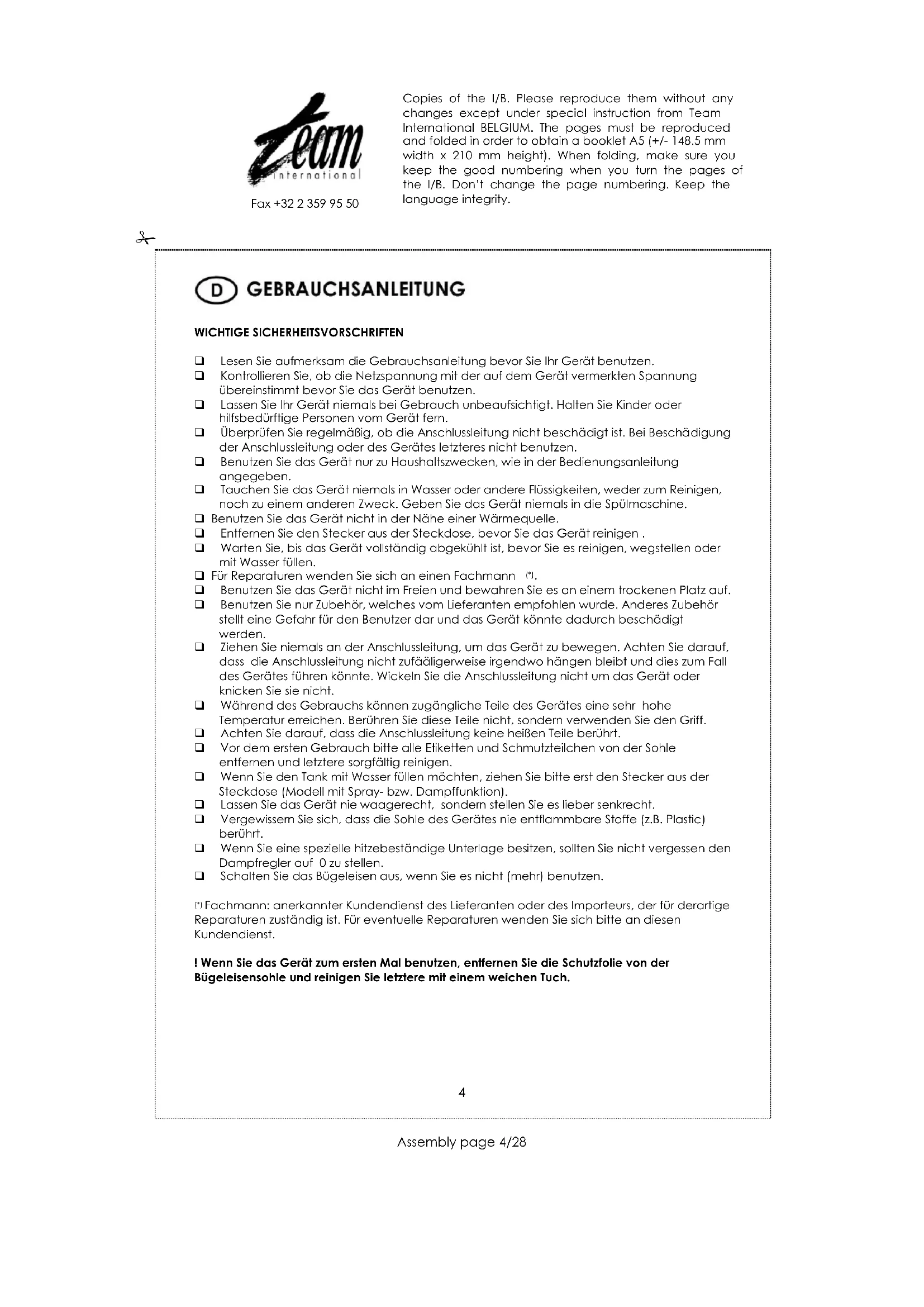 Laden Sie die Anleitung für Ihr Bügeleisen kostenlos im PDF-Format! Finden Sie Ihr Handbuch DAI 32 - TEAM und nehmen Sie Ihr elektronisches Gerät wieder in die Hand. Auf dieser Seite sind alle Dokumente veröffentlicht, die für die Verwendung Ihres Geräts notwendig sind. DAI 32 von der Marke TEAM.
