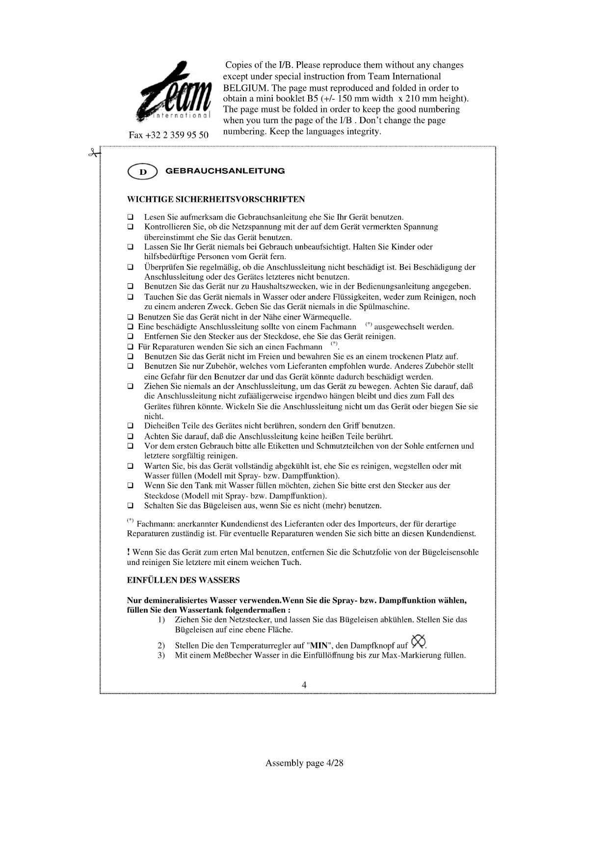 Laden Sie die Anleitung für Ihr Bügeleisen kostenlos im PDF-Format! Finden Sie Ihr Handbuch DAI 29 - TEAM und nehmen Sie Ihr elektronisches Gerät wieder in die Hand. Auf dieser Seite sind alle Dokumente veröffentlicht, die für die Verwendung Ihres Geräts notwendig sind. DAI 29 von der Marke TEAM.