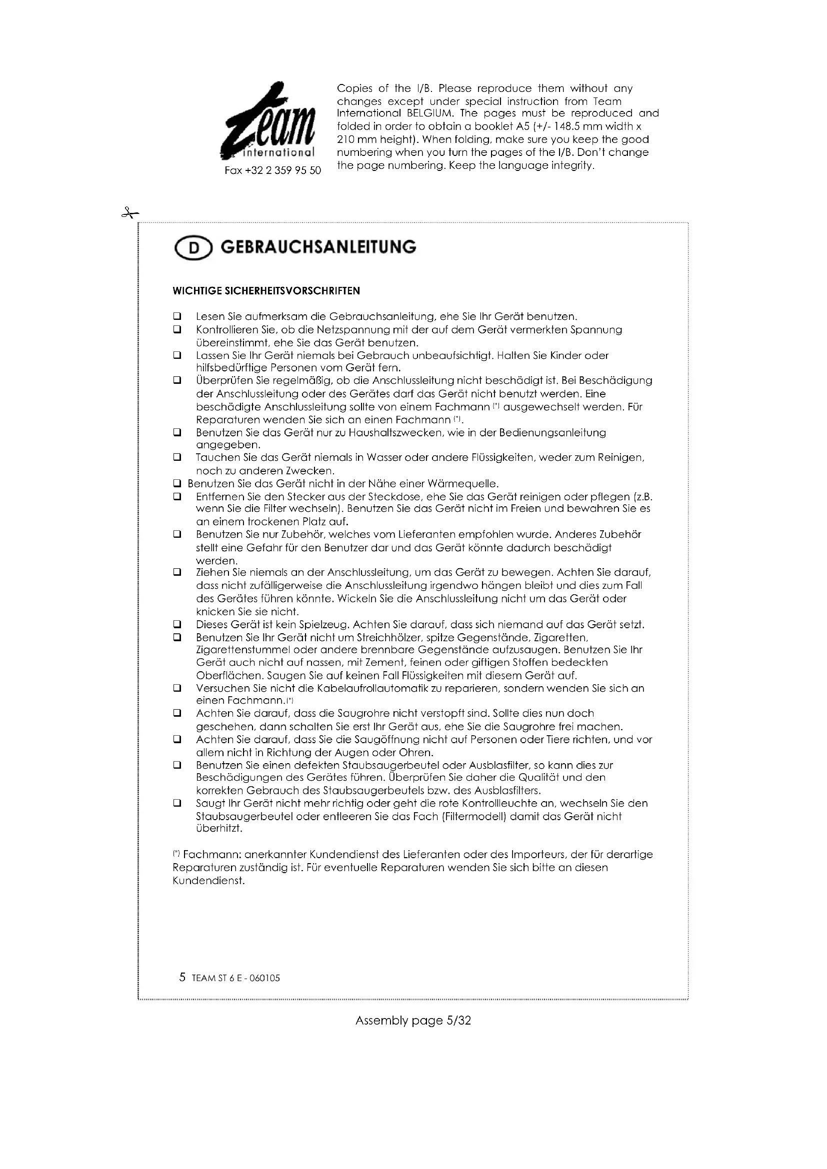 BEDIENUNGSANLEITUNG ST 6 E TEAM