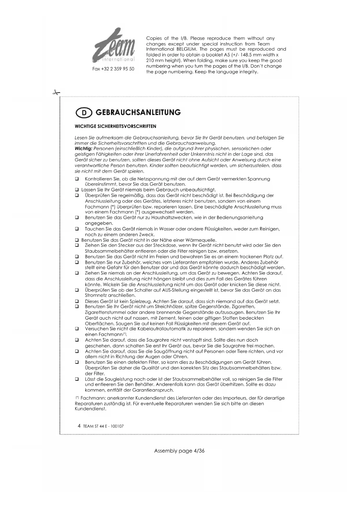 ST 44 - Staubsauger TEAM - Kostenlose Bedienungsanleitung