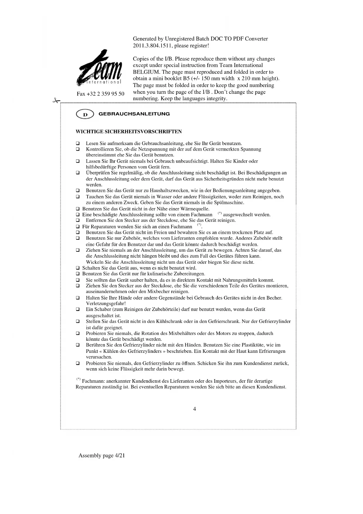 Laden Sie die Anleitung für Ihr Eismaschine kostenlos im PDF-Format! Finden Sie Ihr Handbuch LC 1 - TEAM und nehmen Sie Ihr elektronisches Gerät wieder in die Hand. Auf dieser Seite sind alle Dokumente veröffentlicht, die für die Verwendung Ihres Geräts notwendig sind. LC 1 von der Marke TEAM.