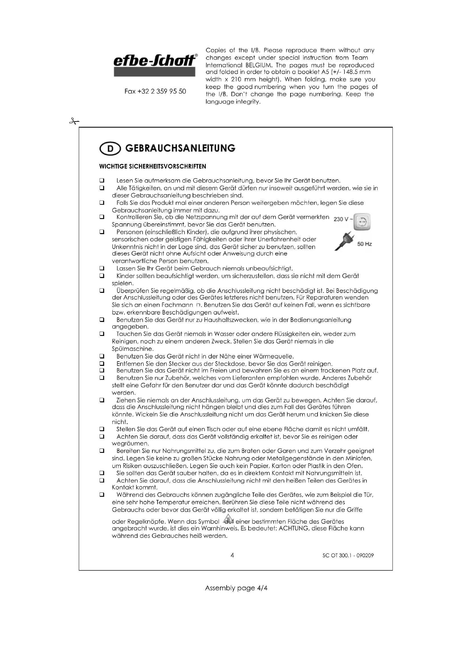 OT 300.1 - Ofen TEAM - Kostenlose Bedienungsanleitung