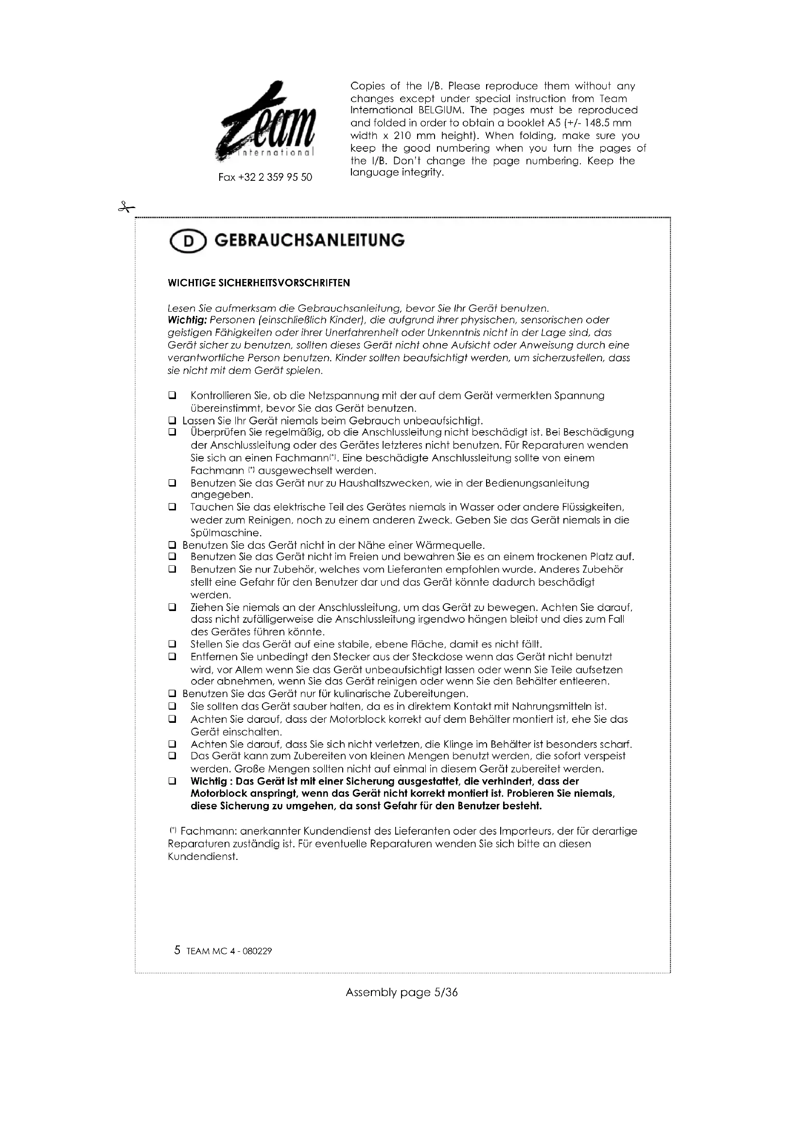 BEDIENUNGSANLEITUNG MC 4 TEAM