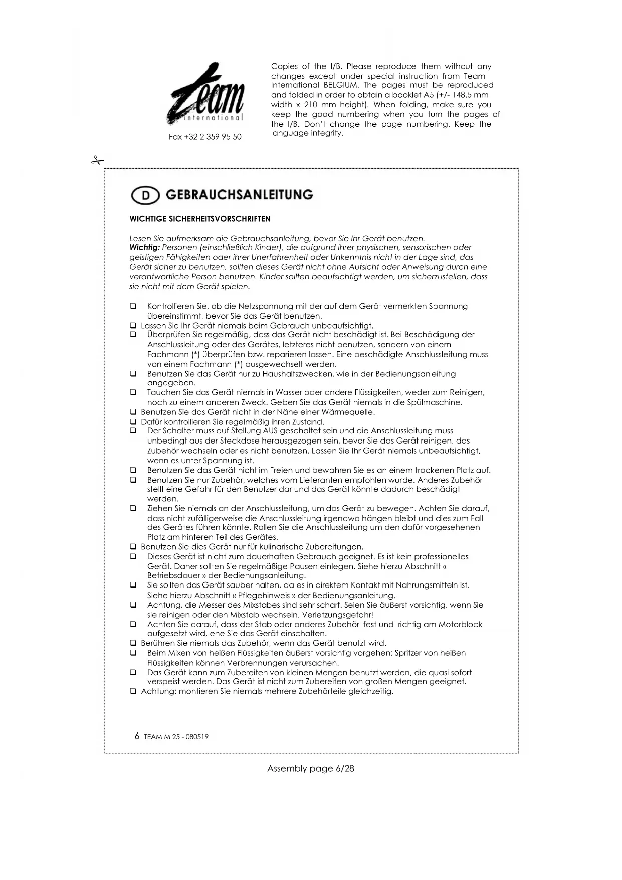 BEDIENUNGSANLEITUNG M 25 G TEAM