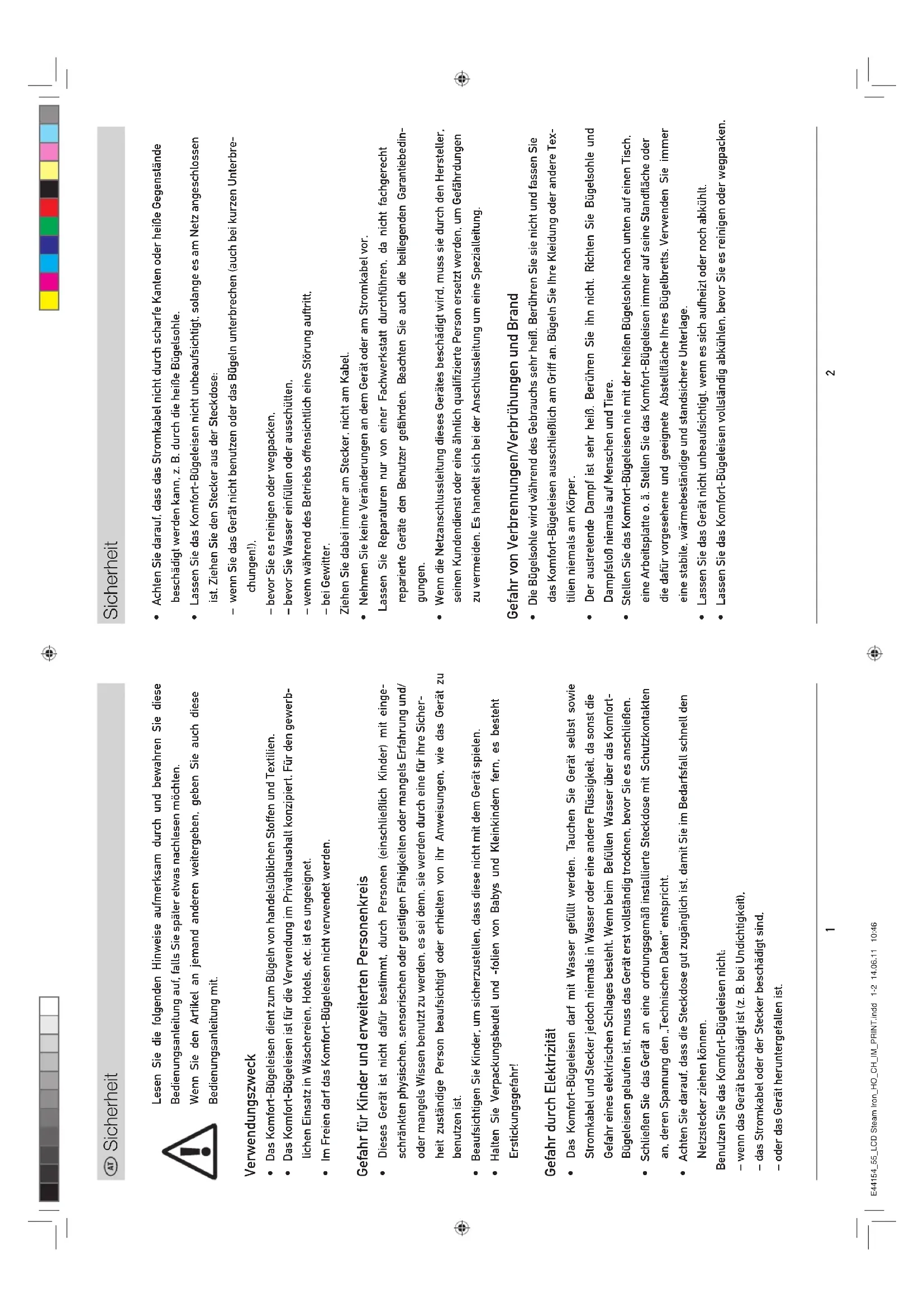 Das Komfort-Bügeleisen ist für die verwendung im Privatnahsdritt konzipiert. Für den gewerblichen Einsatz in Wäschereien, Hotels, etc. ist es ungeeignet.