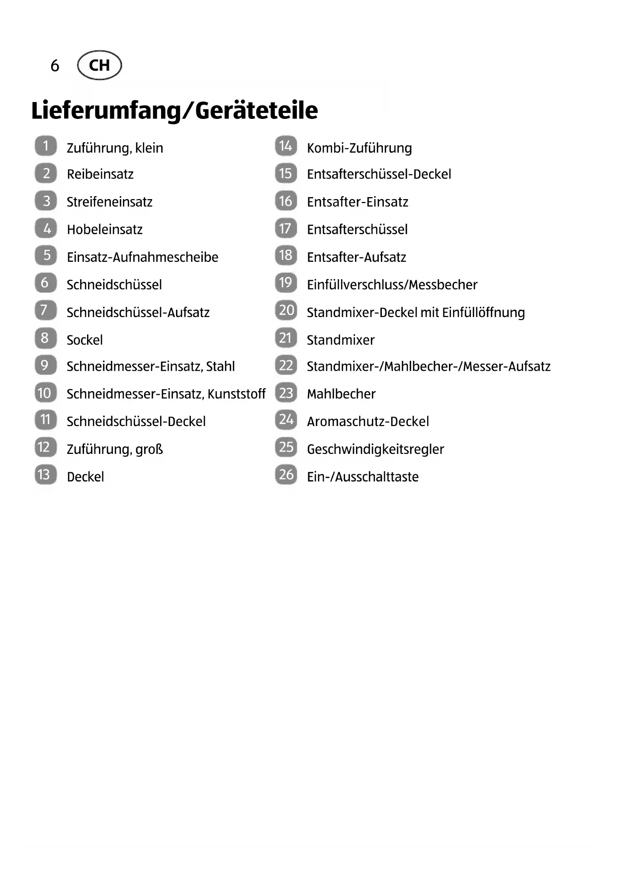 - Lieferumfang/Geräteteile p. 6
