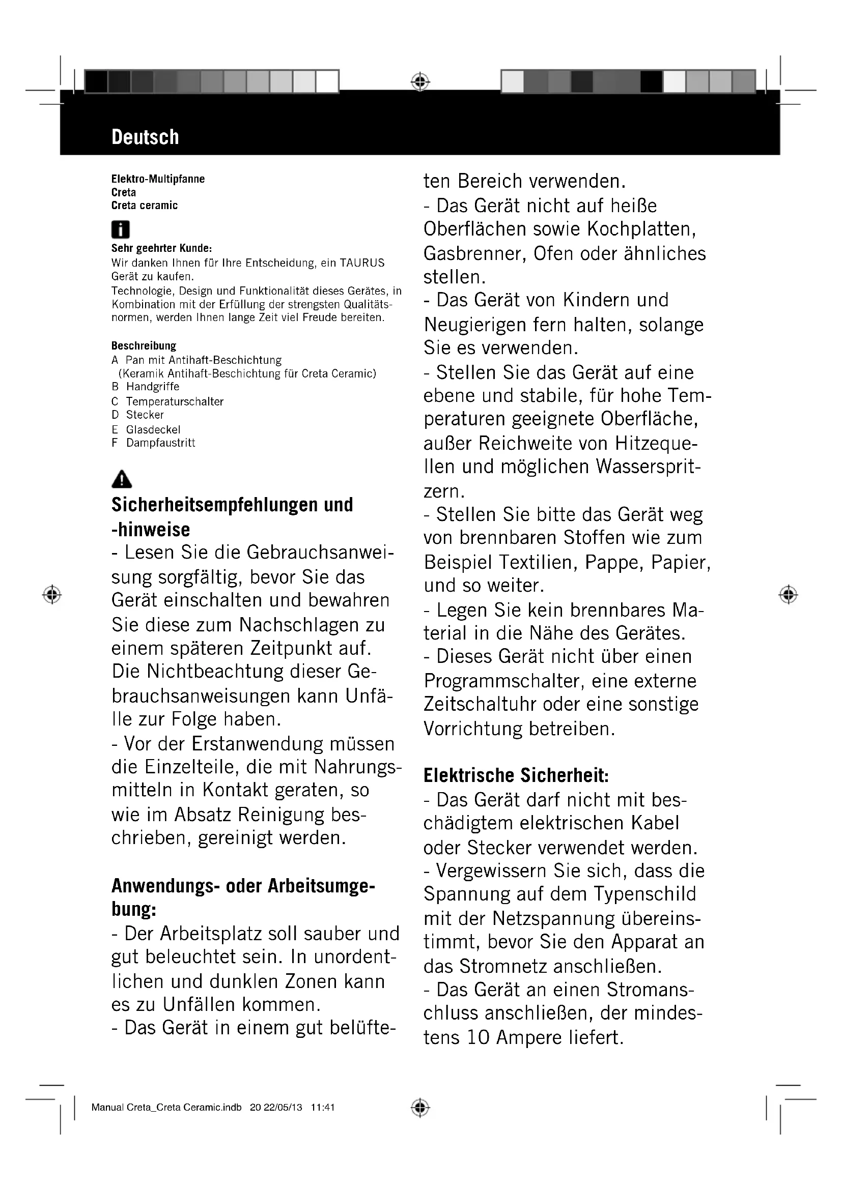 Finden Sie kostenlos die Bedienungsanleitung des Geräts Creta Ceramic TAURUS als PDF.