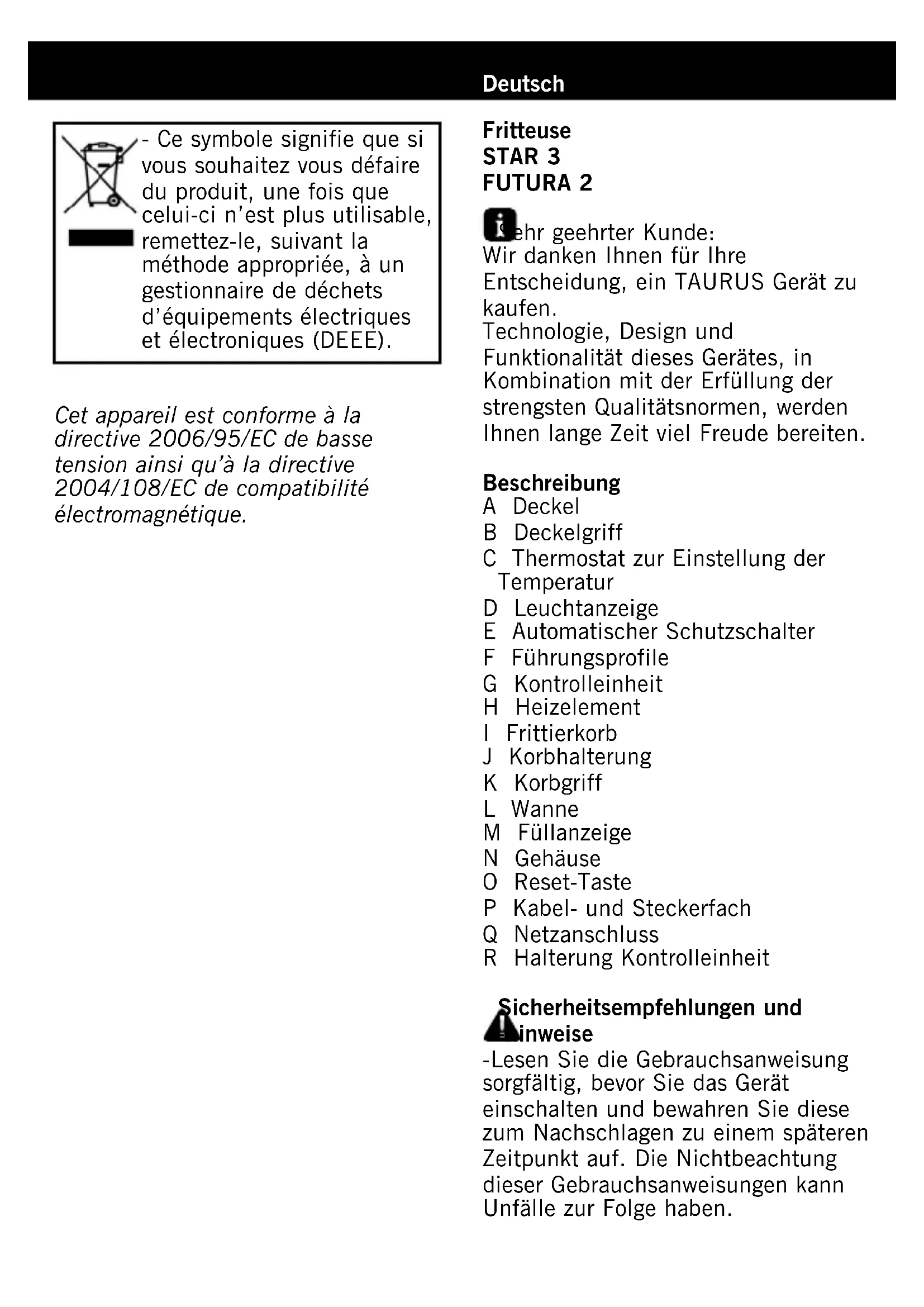 Star 3 - Fritteuse TAURUS - Kostenlose Bedienungsanleitung