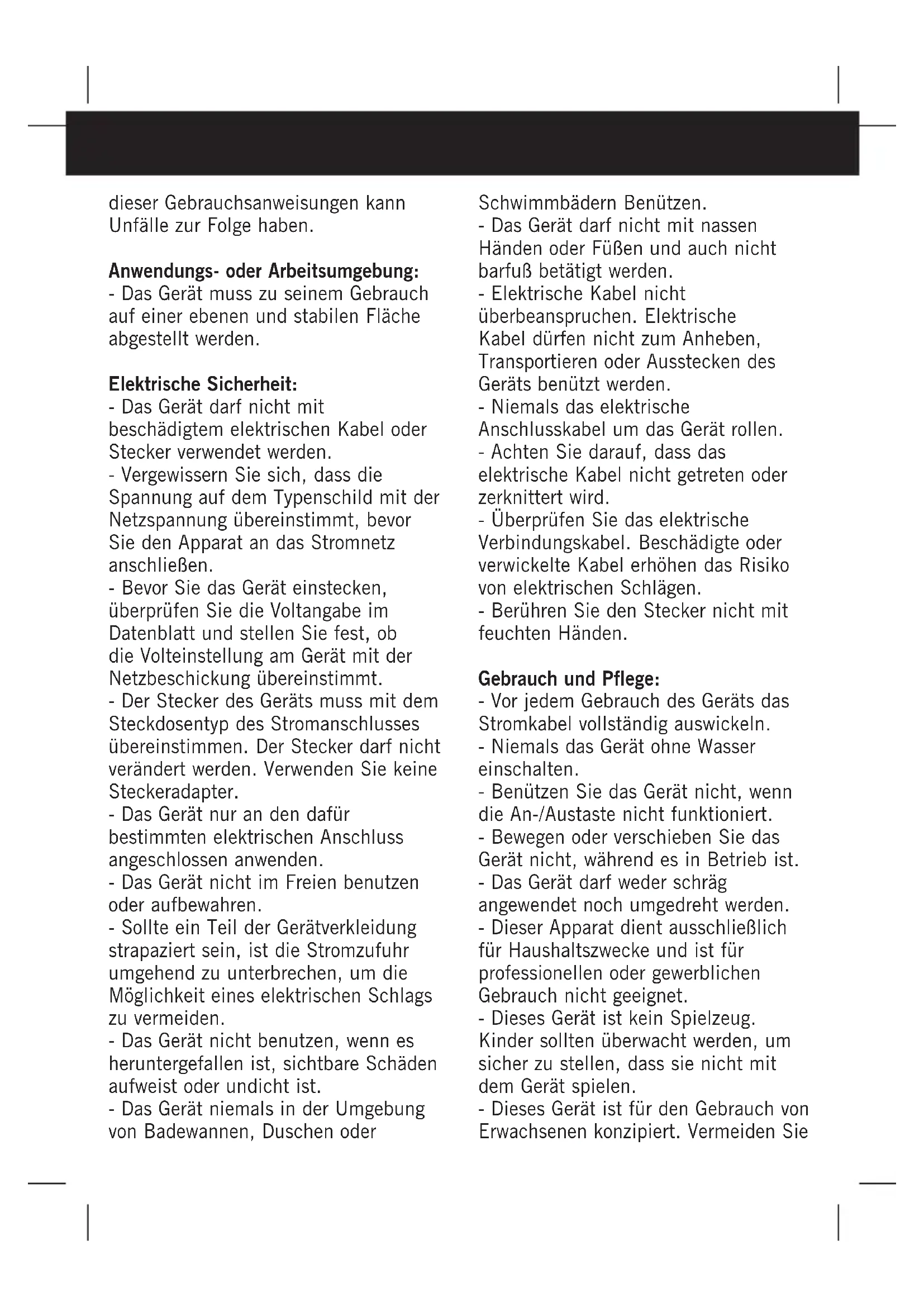 - Das Gerätarf nicht mit nassen Händen oder FüBen und auch nicht barfuß betätigterwenden.