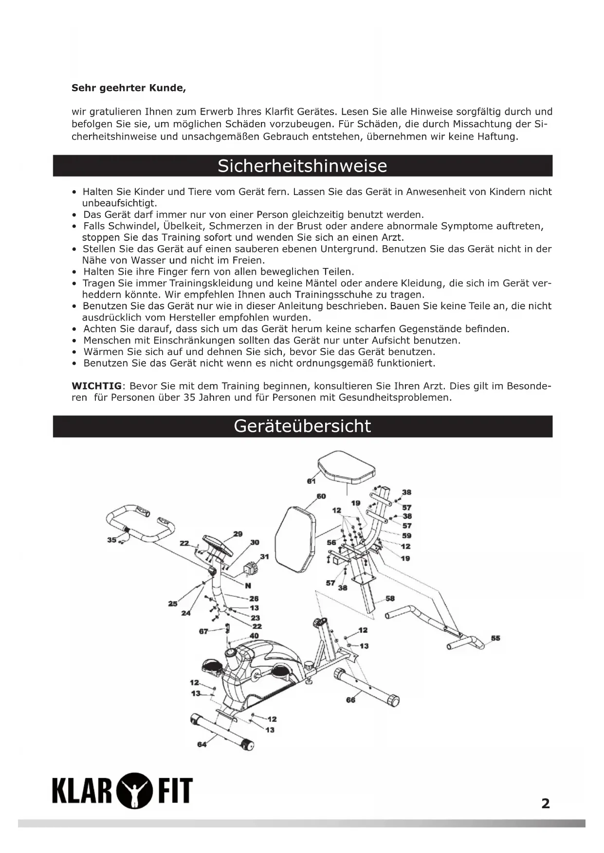 wir gratulieren Ihnen zum Erwerb Ihres Klarfit Gerätes. Lesen Sie alle Hinweise sorgfältig durch und befolgen Sie sie, um möglichen Schäden vorzubeugen. Für Schäden, die durch Missachtung der Sicherheitshinweise und unsachgemäßen Gebrauch entstehen, übernehmen wir keine Haftung.