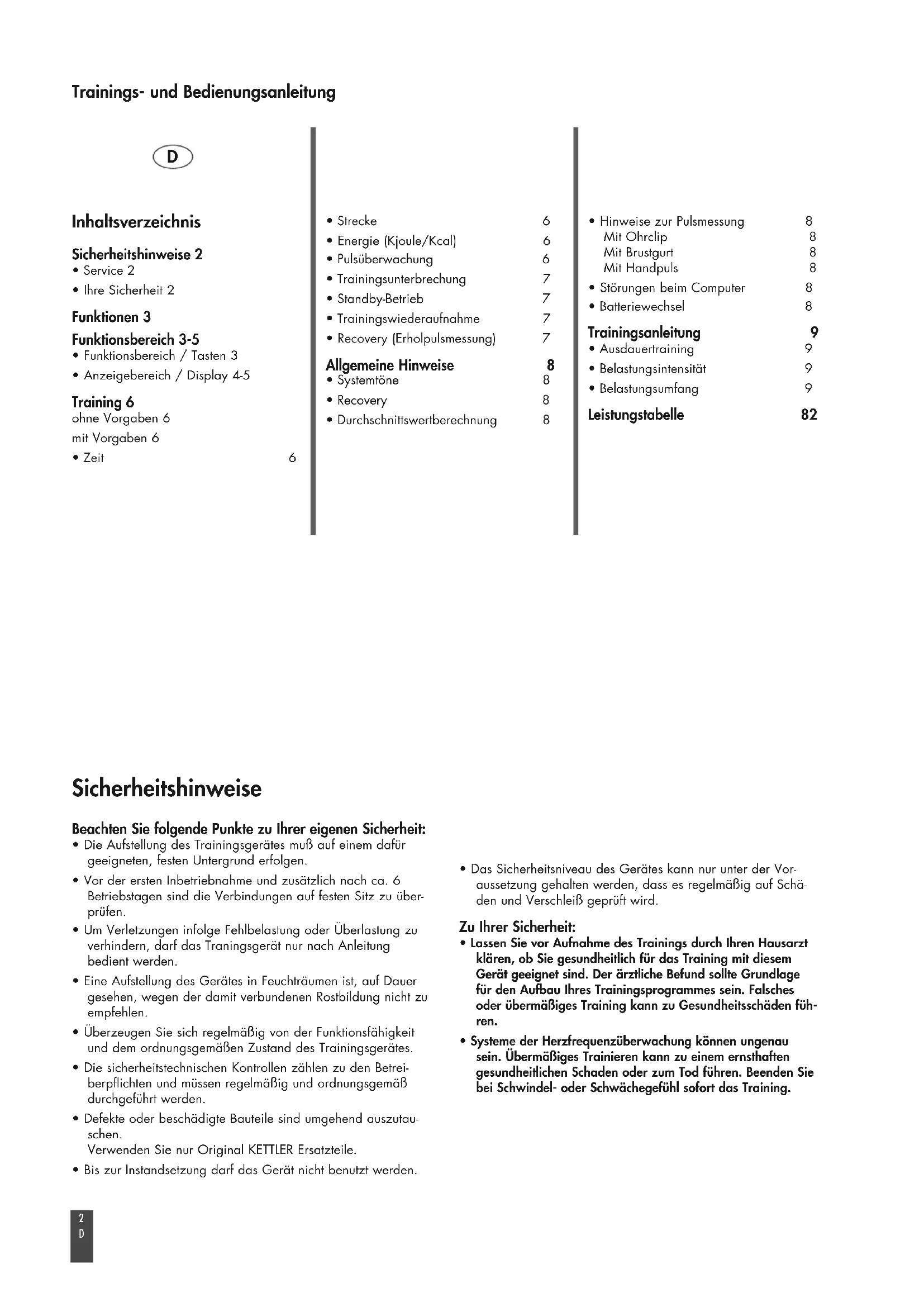 - Systeme der Herzfrequenzüberwachung können ungenau sein. Übermäßiges Trainieren kann zu einem ernsthaften gesundheitlichen Schaden oder zum Tod führen. Beenden Sie bei Schwindel- oder Schwächegefühl sofort das Training. Inhaltsverzeichnis Sicherheitshinweise 2