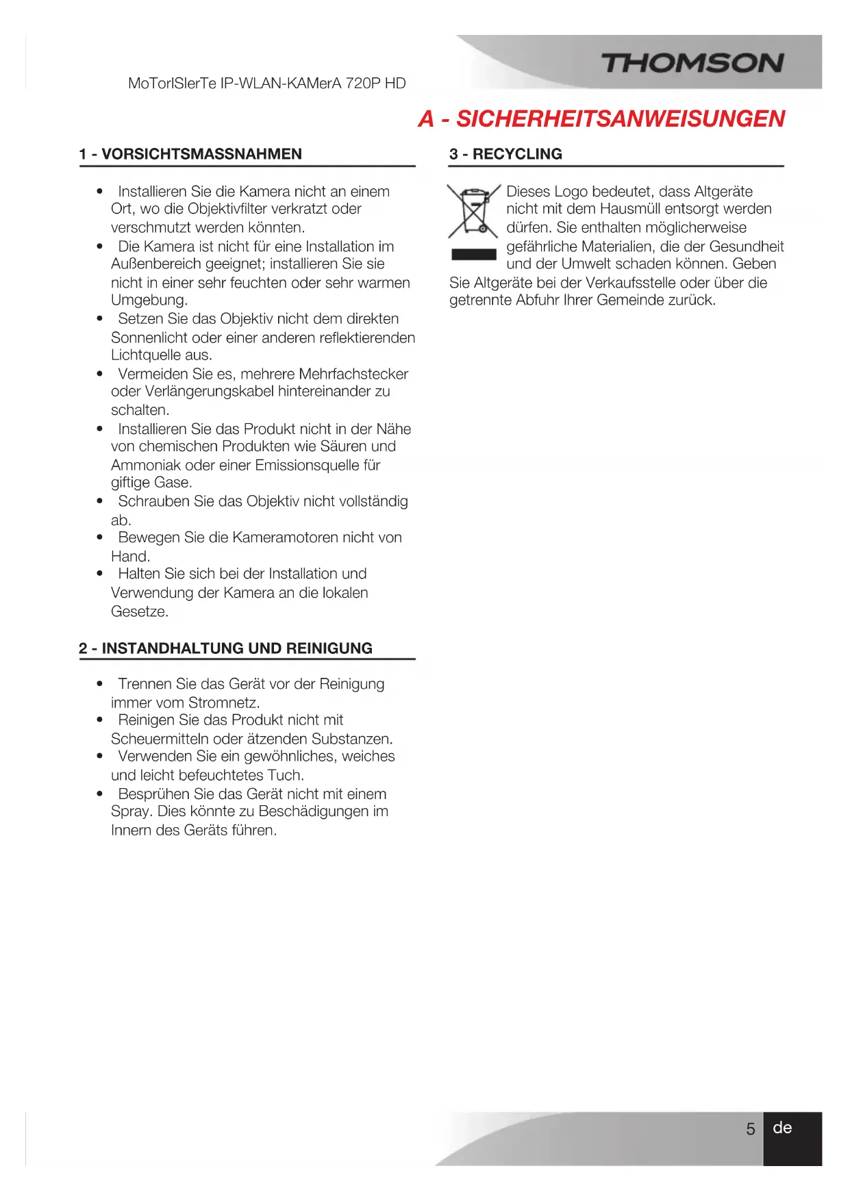 512392 - Überwachungskamera THOMSON - Kostenlose Bedienungsanleitung