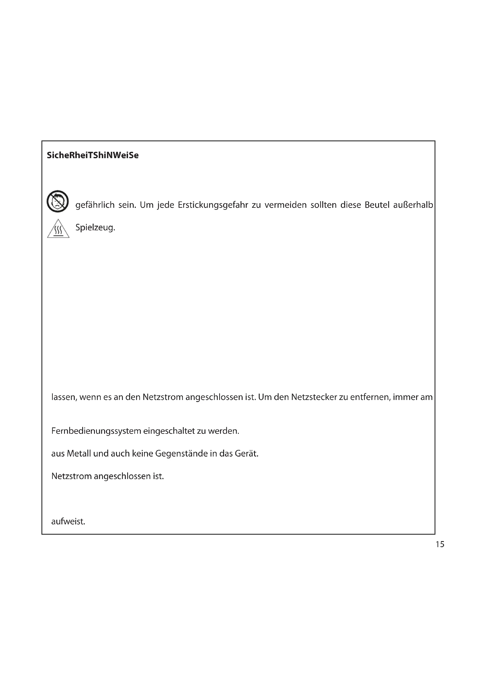 - Der Benutzer darf keinerlei Reparaturen selbst durchführen.