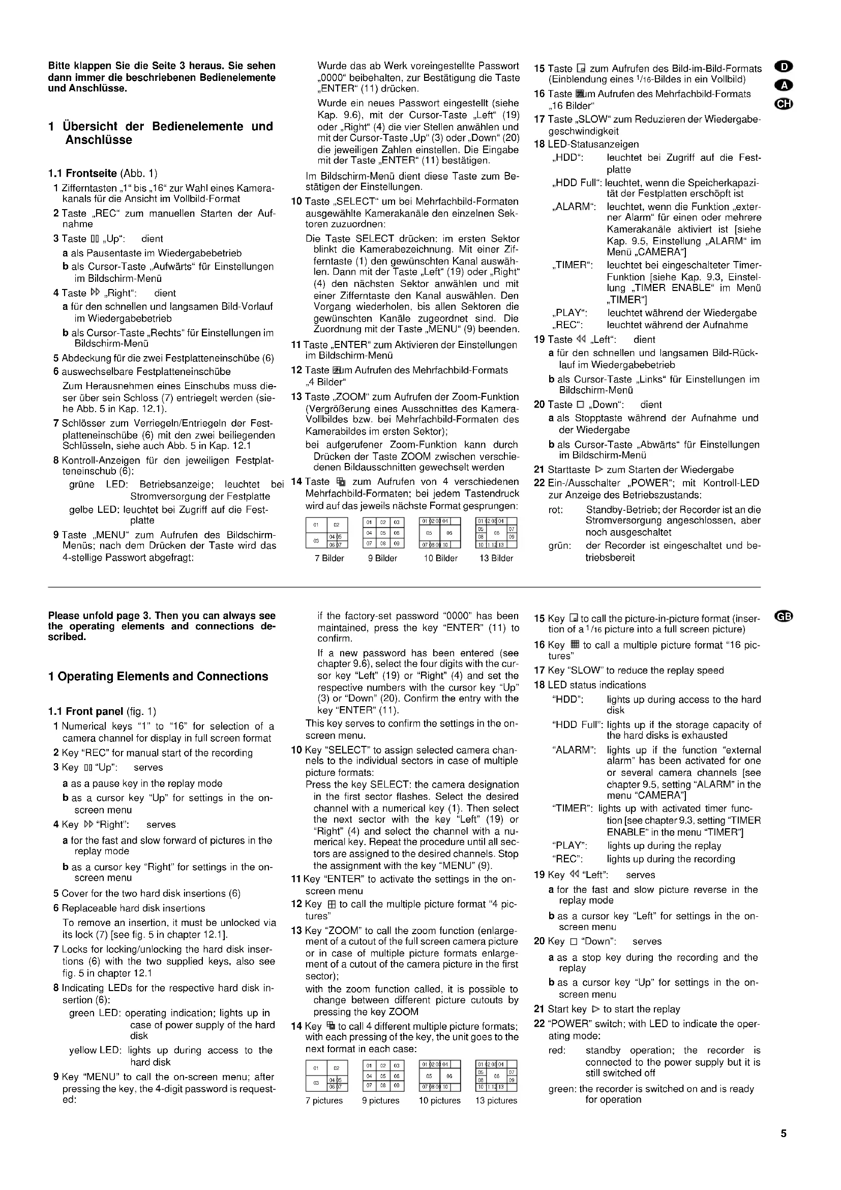 1 Zifferntasten "1" bis "16" zur Wahl eines Kamerakanals für die Ansicht im Vollbild-Format