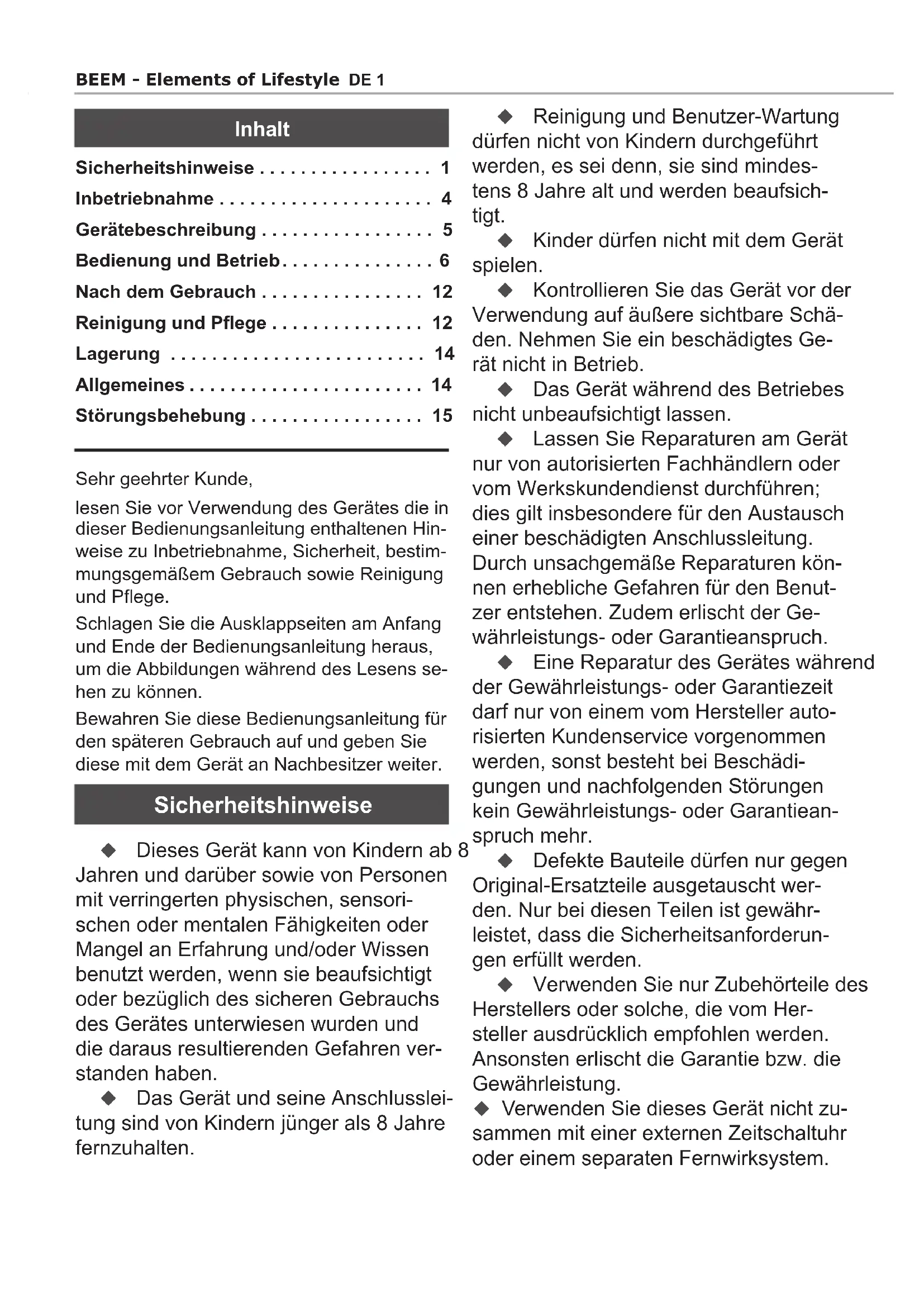 Auf unserer Websites www.beem.de finden Sie die ausfuhrlichen Garantiebe dingungen, erhältliches Zubehör und Er satzteile sowie Bedienungsanleitungen in verschiedene Sprachen.
