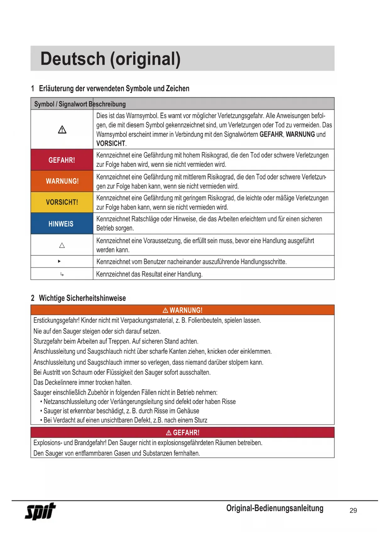Original-Bedienungsanleitung Deutsch (original) 1 Erläuterung der verwendeten Symbole und Zeichen Symbol / Signalwort Beschreibung