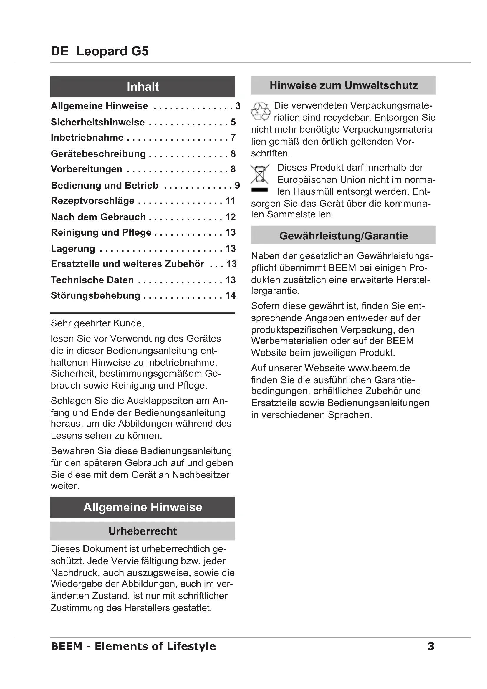 BEDIENUNGSANLEITUNG Leopard G5 BEEM